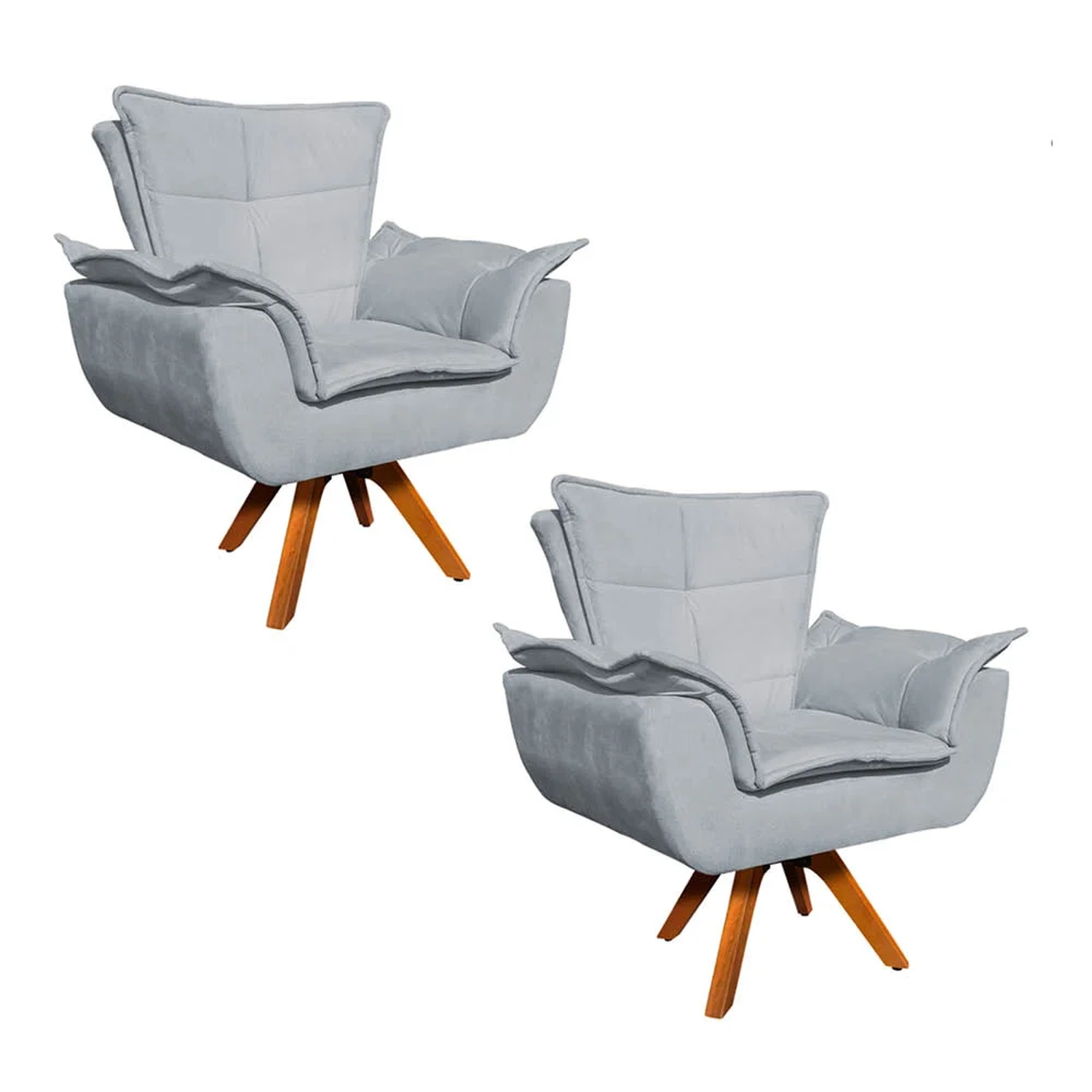 Kit 2 Poltronas Decorativas Sala de Estar Base Giratória Madeira Opla Suede Cinza - Ibiza 660043903