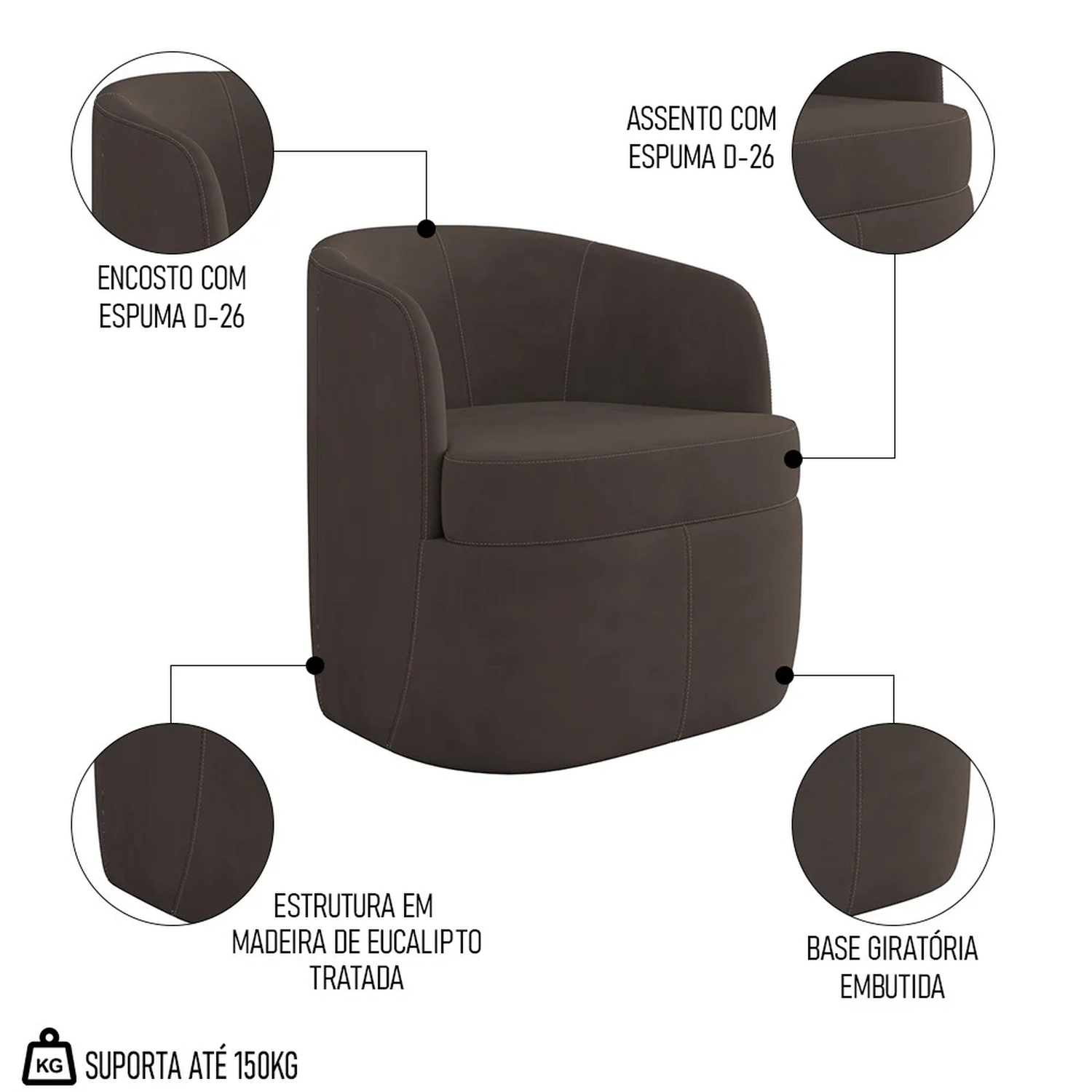Sinônimo de elegância e bom-gosto, o Kit 2 Poltronas Giratória Decorativa para Sala Dandara Z08 Veludo Marrom, da Mpozenato, vai elevar o estilo decorativo da sua sala de estar ou living.