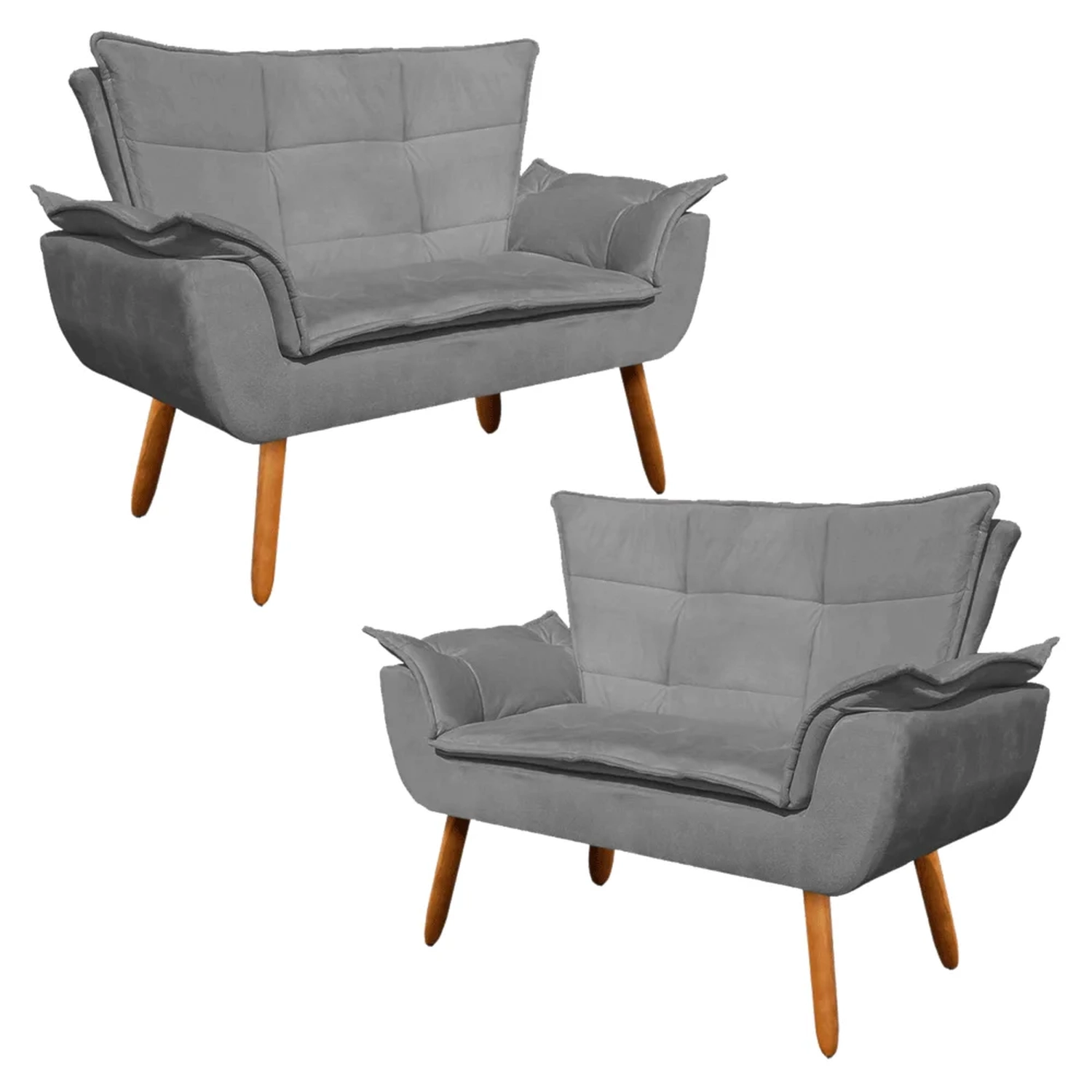 Kit 2 Poltronas Namoradeiras Pés Palito 2 Lugares Opla Suede Grafite - Ibiza 660043992