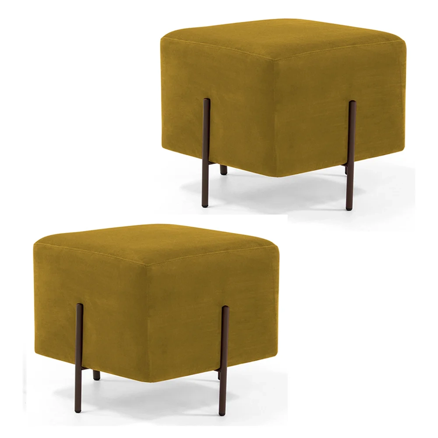 Kit 2 Puffs Decorativos 45cm Base Aço Status C-279 Veludo Mostarda - Domi 660042332