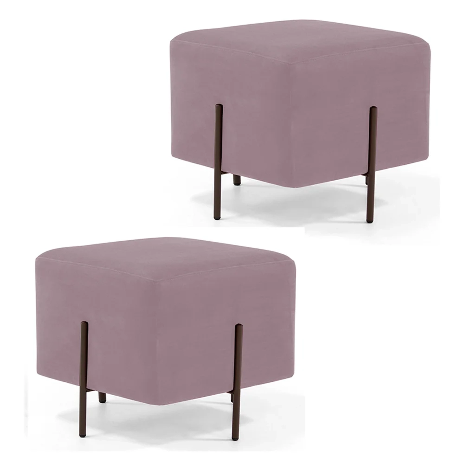 Kit 2 Puffs Decorativos 45cm Base Aço Status C-305 Veludo Rosê - Domi 660042336