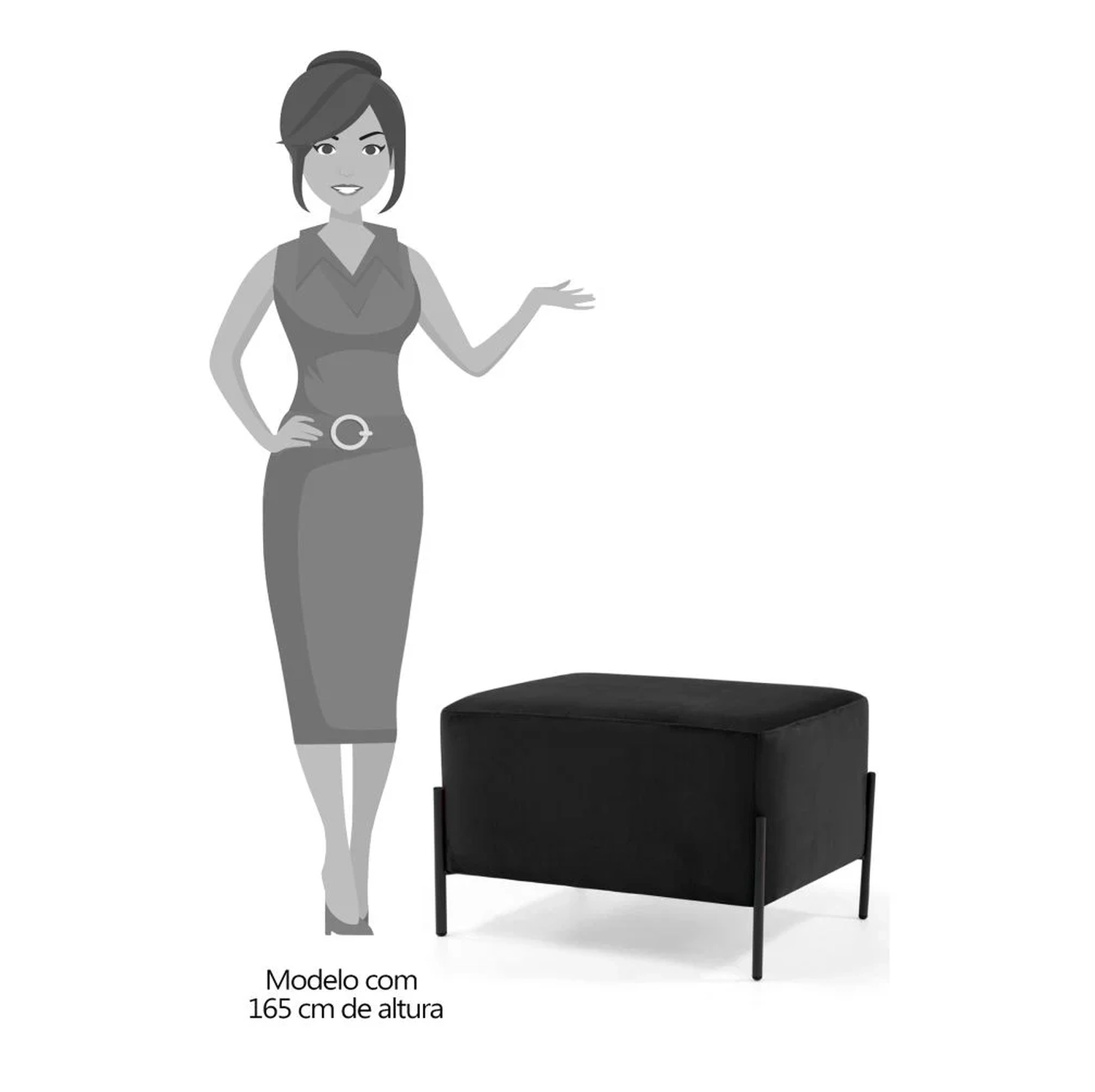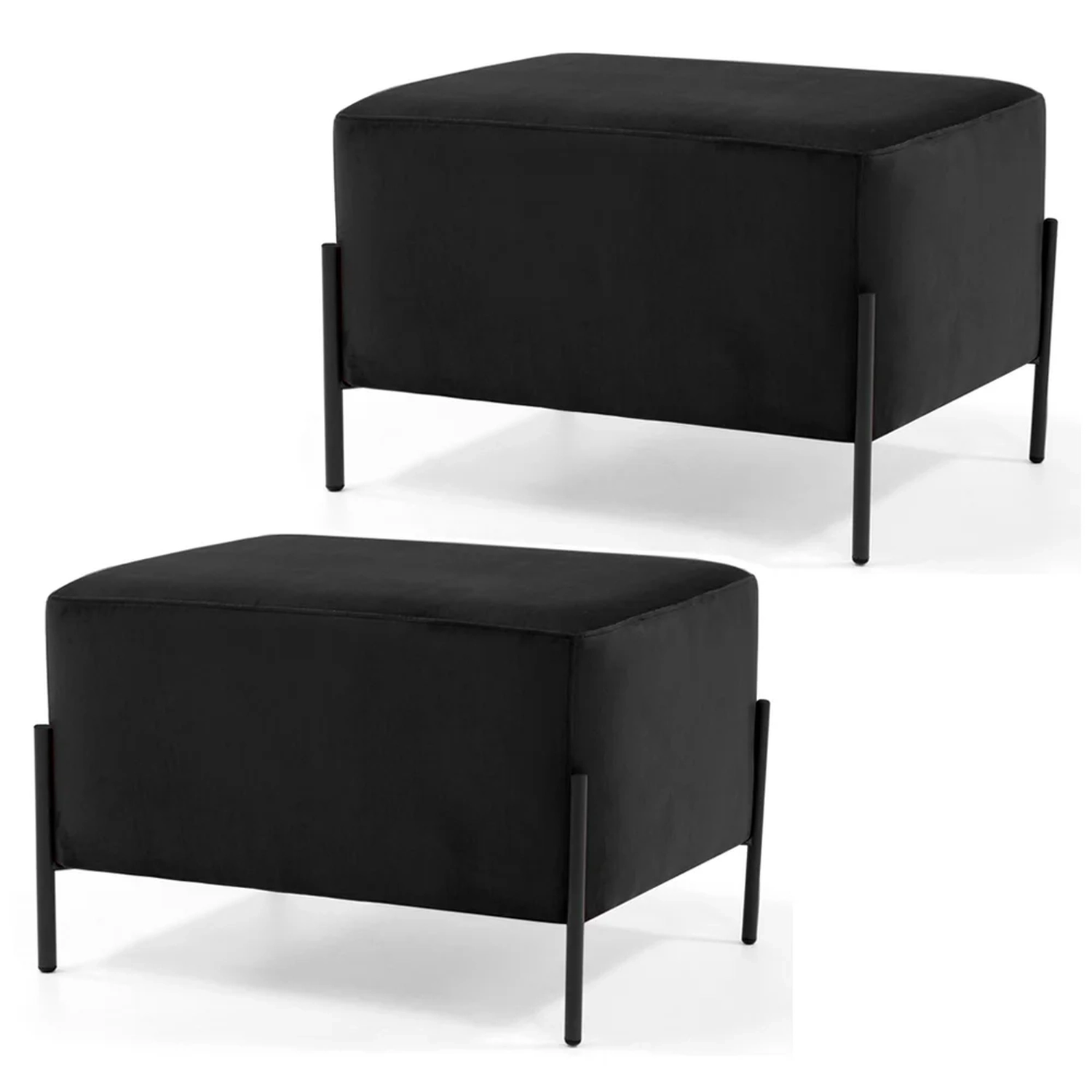Kit 2 Puffs Decorativos 60cm Base Aço Status C-300 Veludo Preto - Domi 660042345