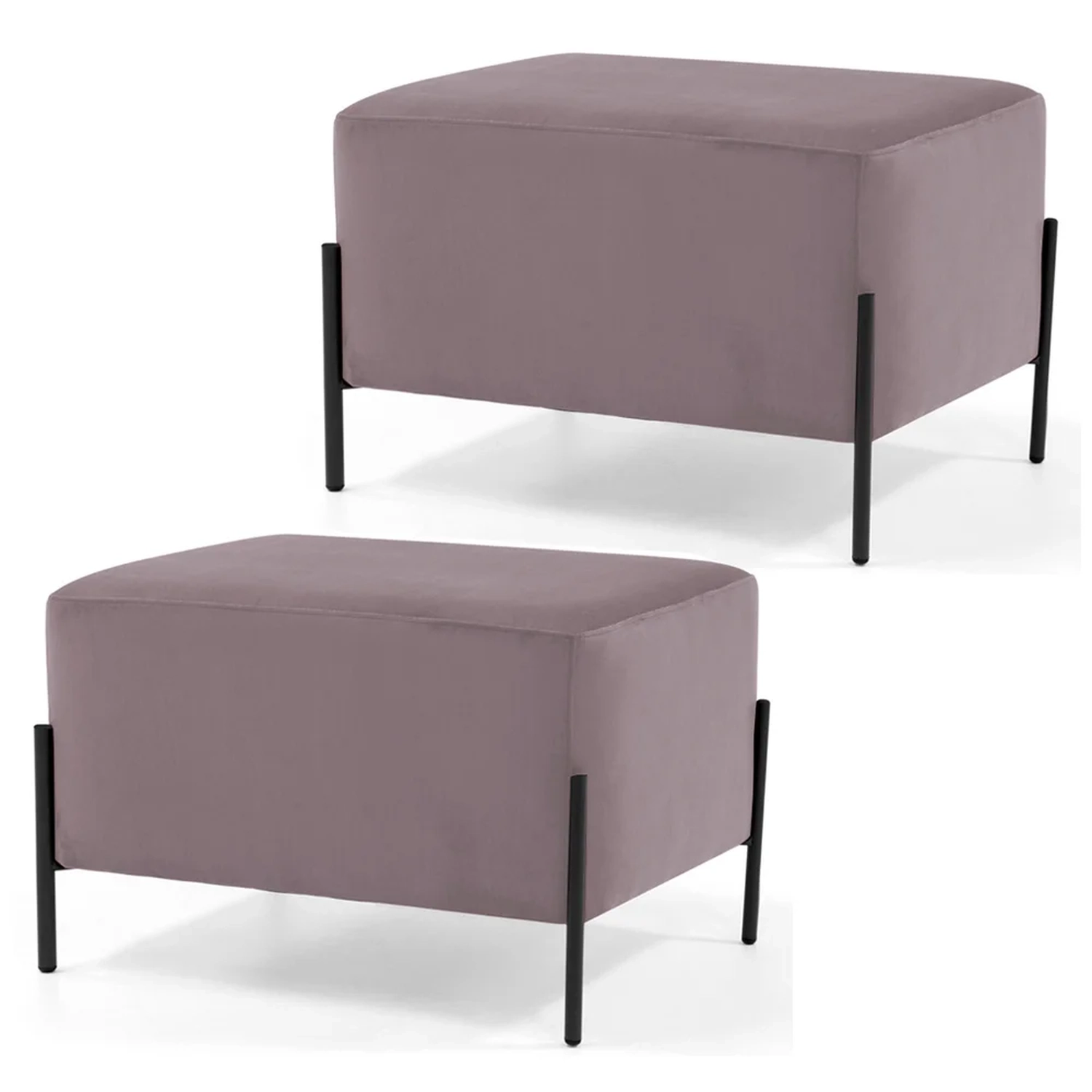 Kit 2 Puffs Decorativos 60cm Base Aço Status C-305 Veludo Rosê - Domi 660042348