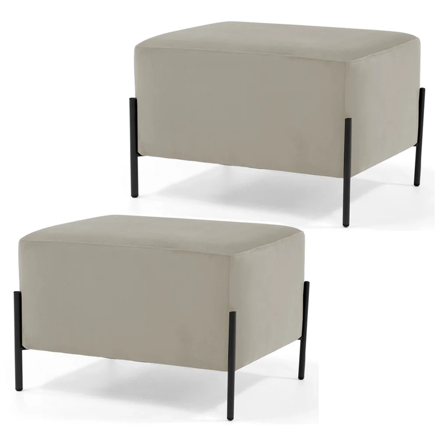 Kit 2 Puffs Decorativos 60cm Base Aço Status C-309 Veludo Bege - Domi 660042349