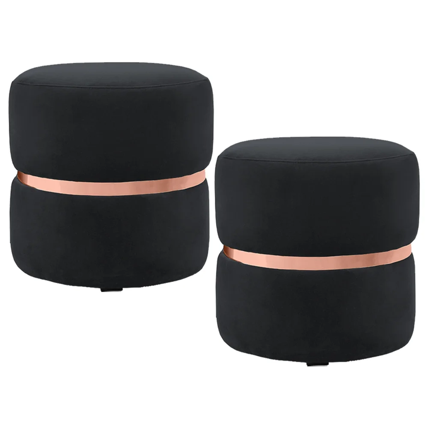 Kit 2 Puffs Decorativos Com Cinto Rosê Round C-300 Veludo Preto - Domi 660043306