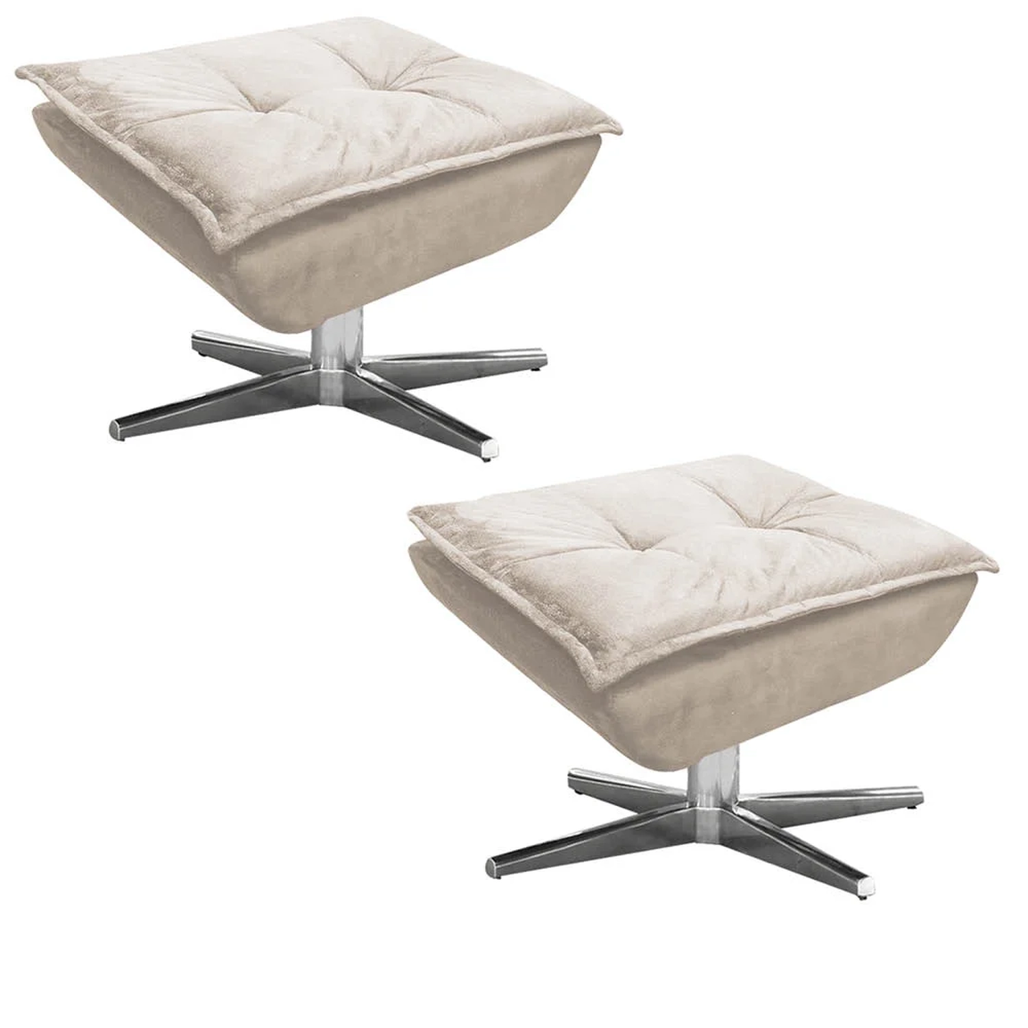 Kit 2 Puffs Decorativos Sala de Estar Giratória Cromada Opla Suede Bege - Ibiza 660043968