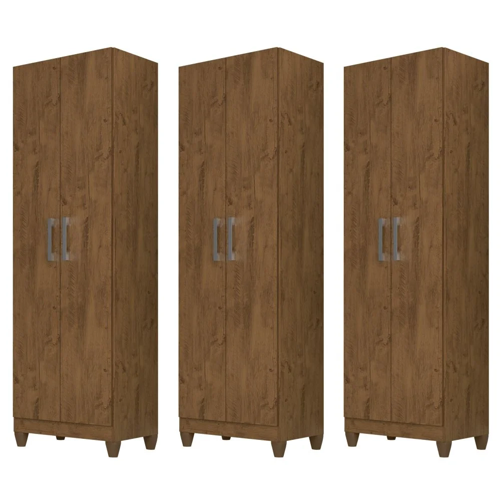 O Kit com 3 Armários Organizadores Multiuso Íris 2 Portas Castanho Wood - Moval é excelente para trazer mais praticidade e organização à sua casa, pois possui estrutura de excelente qualidade confeccionada em MDP de 12 e 15 mm e acabamento em pintura UV, o que proporciona maior durabilidade e resistência ao produto.