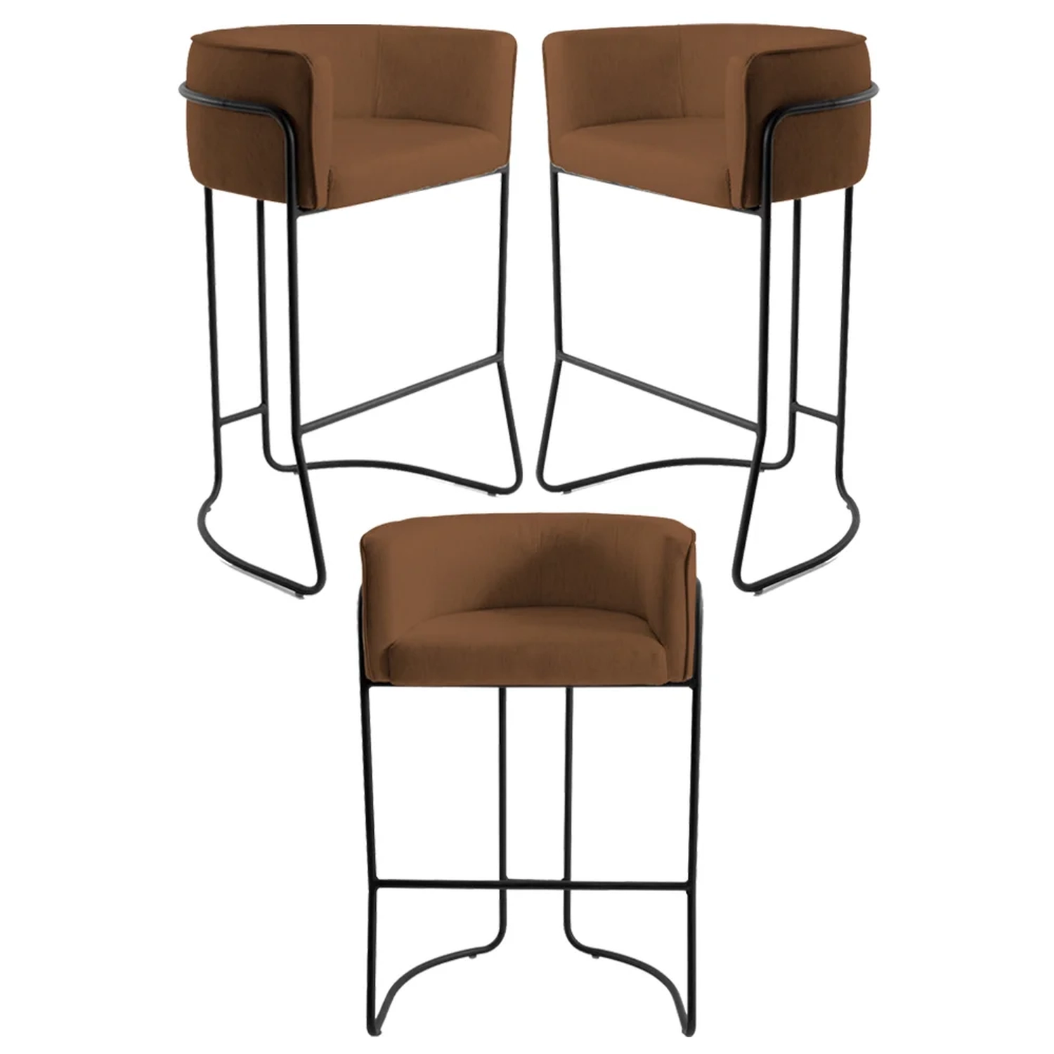 Kit 3 Banquetas Decorativas Base Aço Preto Betina Veludo C-262 Telha - Domi 660042473
