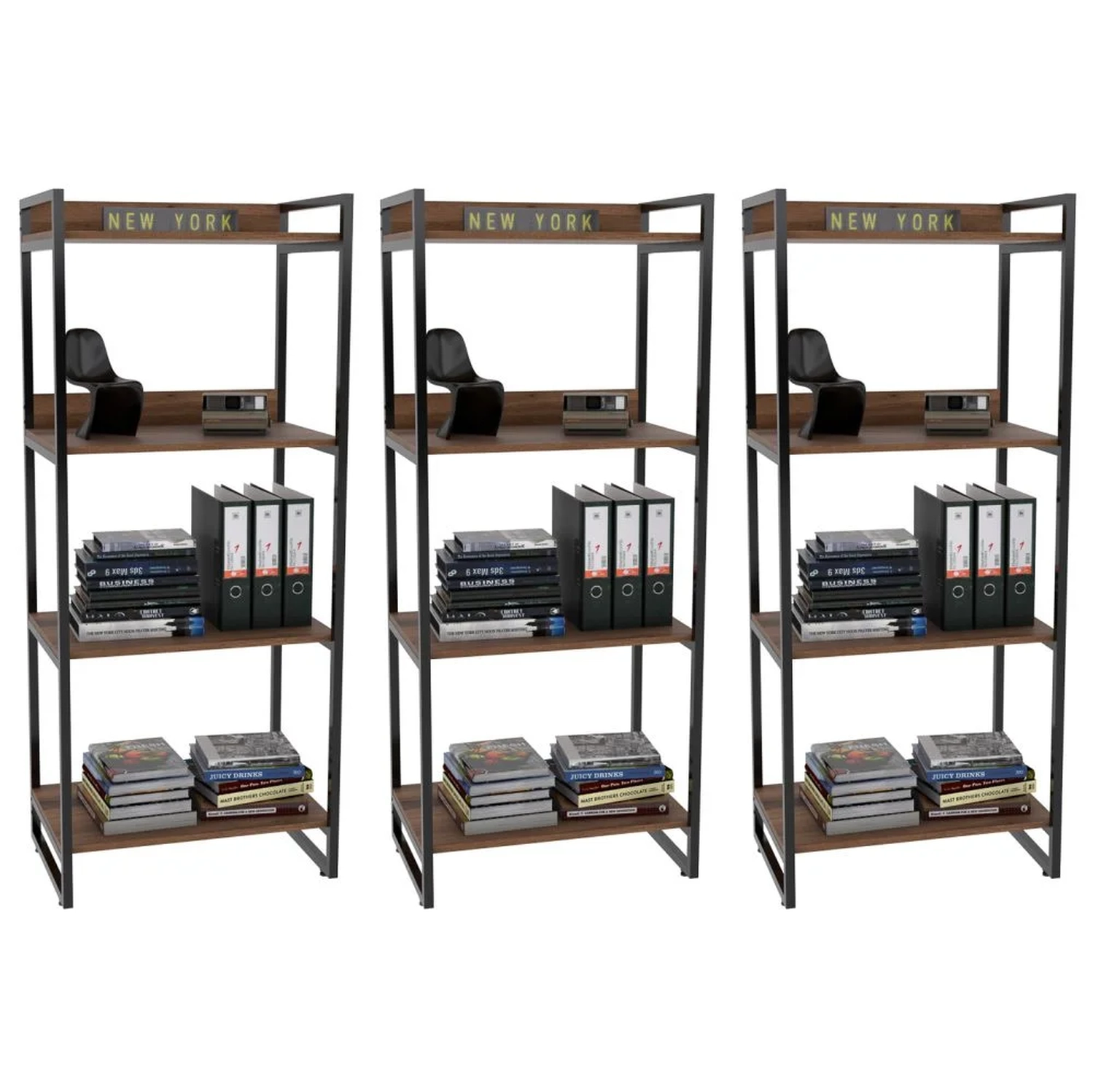 O Kit 3 Estante Livreiro Prisma Estilo Industrial 60cm 4 Prateleiras Nogal - Mpozenato, são práticos e ideais para valorizar sua decoração garantindo praticidade e estilo. Confeccionadas em MDP de 15 mm com acabamento em BP e partes metálicas em pintura epóxi que proporcionam maior durabilidade e resistência ao produto. Além disso, contam com design inovador com seu estilo industrial combinando os tubos de aço à madeira, trazendo um pouco do charme urbano ao seu ambiente. Ideais para expor objetos decorativos como livros. Adquira já!