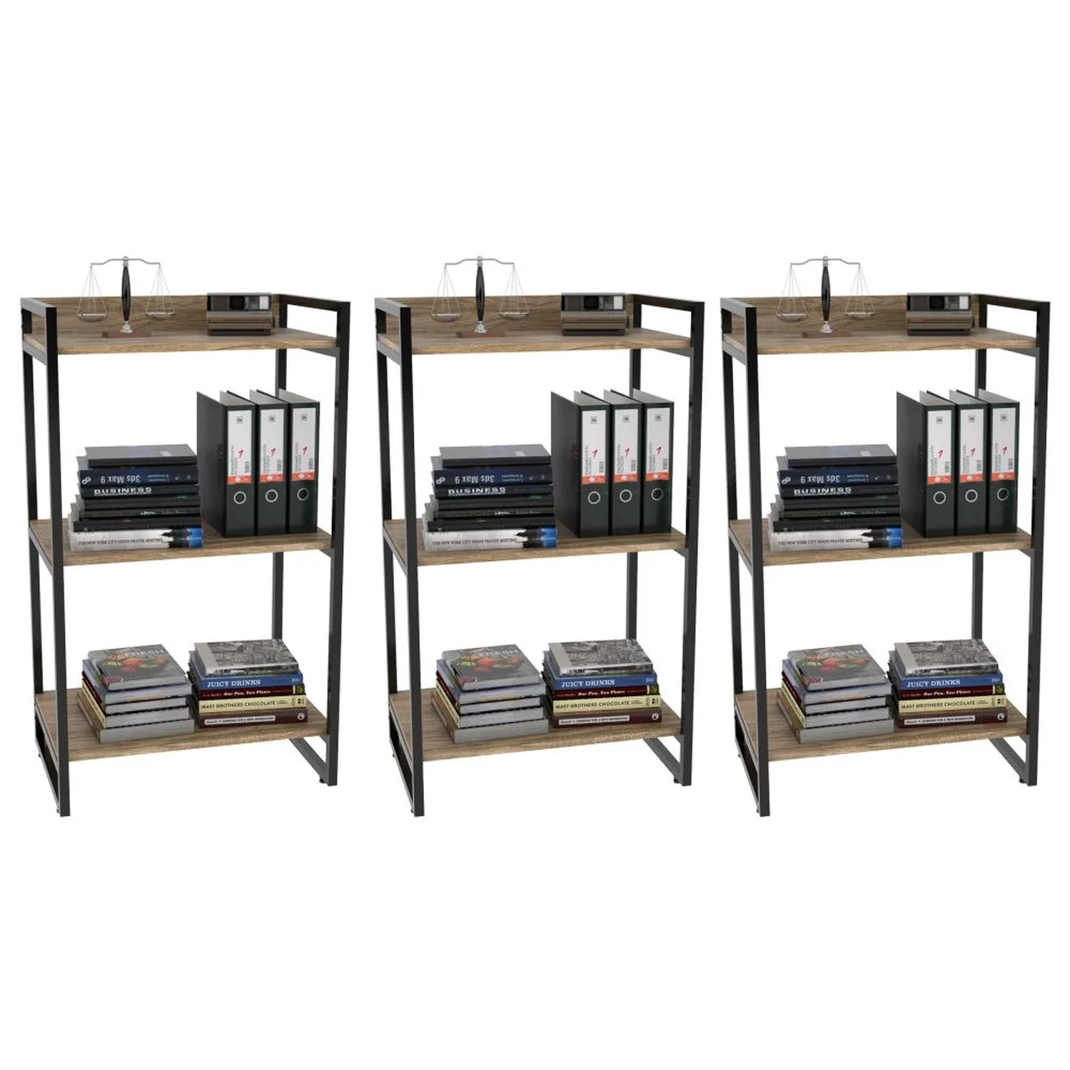 O Kit 3 Estantes Livreiro Prisma Estilo Industrial 60cm 3 Prateleiras Carvalho - Mpozenato, vão dar estilo e valorizar sua decoração garantindo praticidade e facilitando na organização. Confeccionadas em MDP de 15 mm com acabamento em BP e partes metálicas em pintura epóxi que proporcionam maior durabilidade e resistência aos produtos. Além disso, contam com design inovador com seu estilo industrial combinando os tubos de aço à madeira, trazendo um pouco do charme urbano ao seu ambiente. Ideais para expor objetos decorativos como livros. Adquira já o seu Kit!