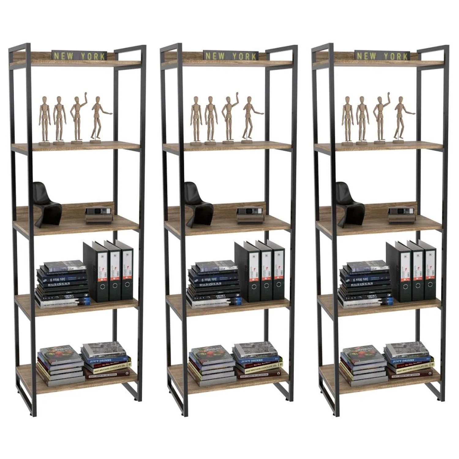 O Kit 3 Estantes Livreiro Prisma Estilo Industrial 60cm 5 Prateleiras Carvalho - Mpozenato, é ideal para valorizar sua decoração garantindo praticidade e estilo. Confeccionada em MDP de 15 mm com acabamento em BP e partes metálicas em pintura epóxi que proporcionam maior durabilidade e resistência ao produto. Além disso, conta com design inovador com seu estilo industrial combinando os tubos de aço à madeira, trazendo um pouco do charme urbano ao seu ambiente. Ideal para expor objetos decorativos como livros. Não perca essa oportunidade e adquira já a sua!