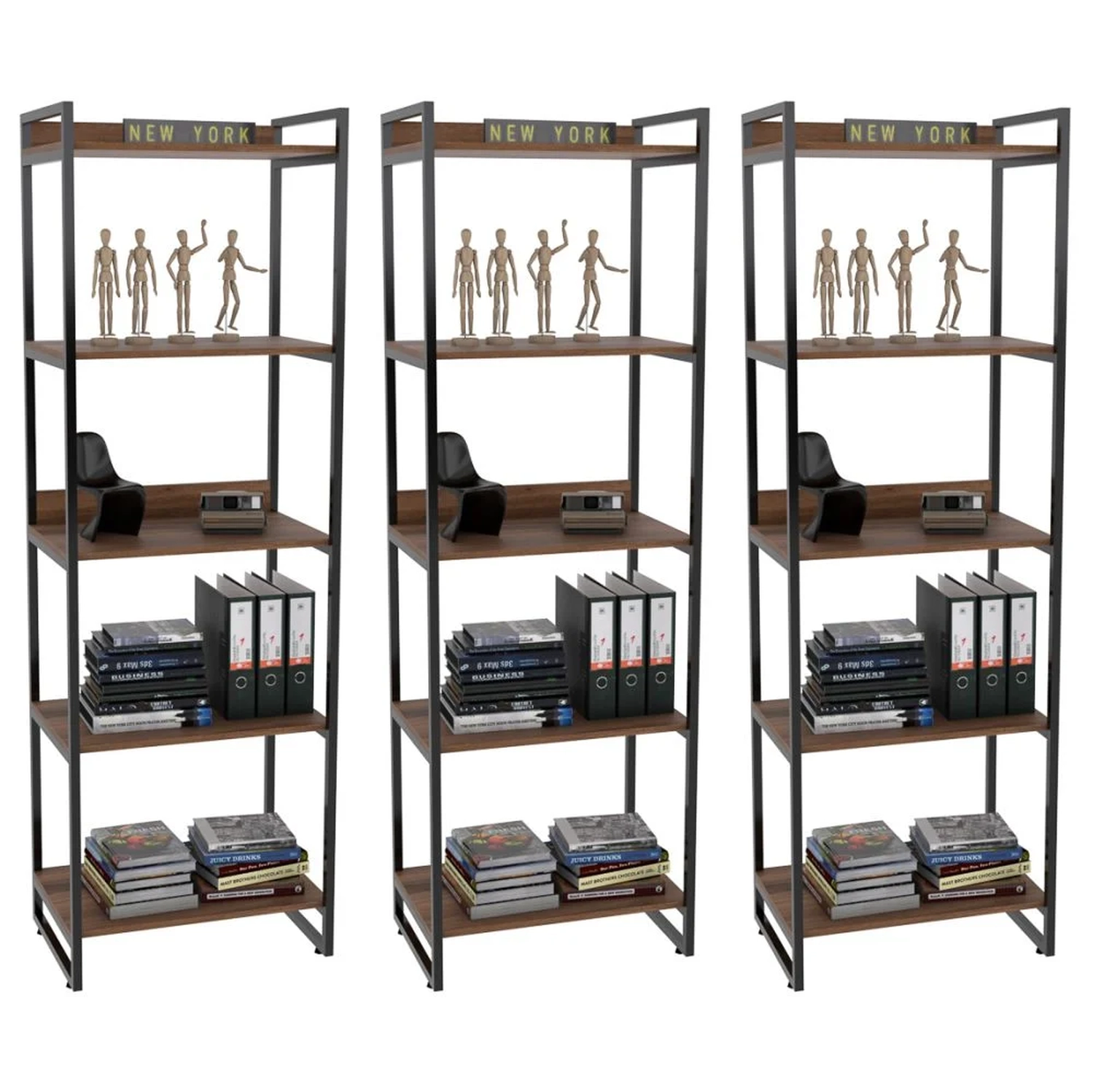 O Kit 3 Estantes Livreiro Prisma Estilo Industrial 60cm 5 Prateleiras Nogal - Mpozenato, é ideal para valorizar sua decoração garantindo praticidade e estilo. Confeccionada em MDP de 15 mm com acabamento em BP e partes metálicas em pintura epóxi que proporcionam maior durabilidade e resistência ao produto. Além disso, conta com design inovador com seu estilo industrial combinando os tubos de aço à madeira, trazendo um pouco do charme urbano ao seu ambiente. Ideal para expor objetos decorativos como livros. Não perca essa oportunidade e adquira já a sua!