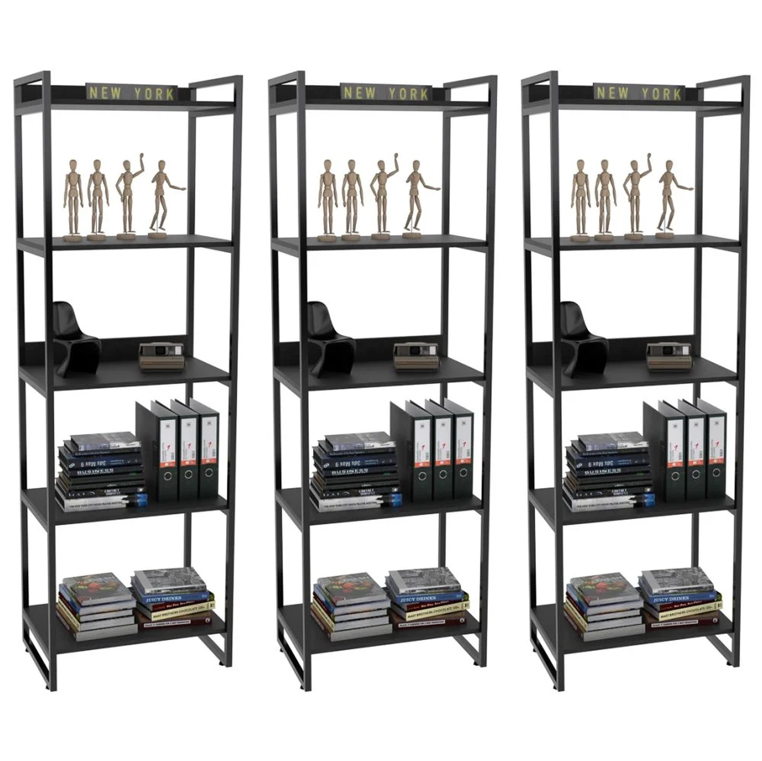 O Kit 3 Estantes Livreiro Prisma Estilo Industrial 60cm 5 Prateleiras Preto Onix - Mpozenato, é ideal para valorizar sua decoração garantindo praticidade e estilo. Confeccionada em MDP de 15 mm com acabamento em BP e partes metálicas em pintura epóxi que proporcionam maior durabilidade e resistência ao produto. Além disso, conta com design inovador com seu estilo industrial combinando os tubos de aço à madeira, trazendo um pouco do charme urbano ao seu ambiente. Ideal para expor objetos decorativos como livros. Não perca essa oportunidade e adquira já a sua!