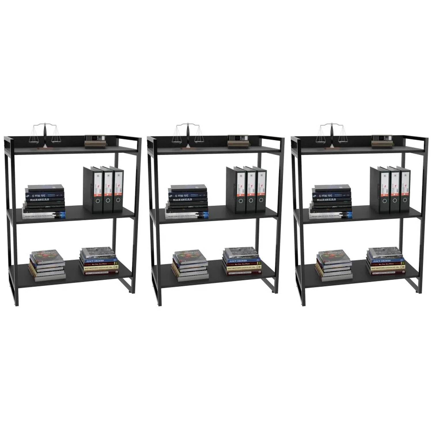 O Kit 3 Estantes Livreiro Prisma Estilo Industrial 80cm 3 Prateleiras Preto Onix - Mpozenato, são perfeitos para dar um toque á mais na sua decoração garantindo praticidade e estilo. Confeccionadas em MDP de 15 mm com acabamento em BP e partes metálicas em pintura epóxi que proporcionam maior durabilidade e resistência ao produto. Além disso, contam com design inovador com seu estilo industrial combinando os tubos de aço à madeira, trazendo um pouco do charme urbano ao seu ambiente. Ideais para expor objetos decorativos como livros. Aproveite e garanta o seu!