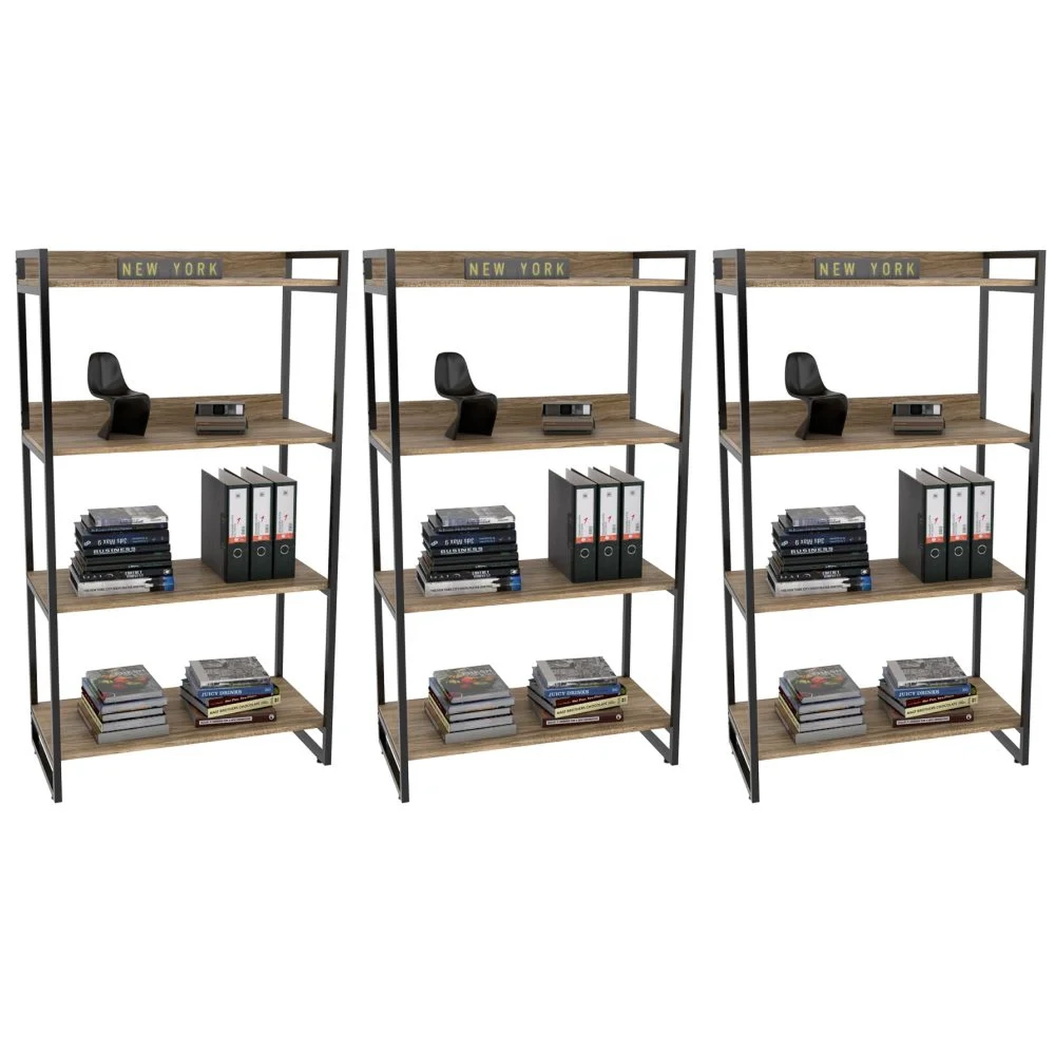 O Kit 3 Estantes Livreiro Prisma Estilo Industrial 80cm 4 Prateleiras Carvalho - Mpozenato, é perfeito para compor sua decoração garantindo praticidade e estilo. Confeccionadas em MDP de 15 mm com acabamento em BP e partes metálicas em pintura epóxi que proporcionam maior durabilidade e resistência ao produto. Além disso, contam com design inovador com seu estilo industrial combinando os tubos de aço à madeira, trazendo um pouco do charme urbano ao seu ambiente. Ideais para expor objetos decorativos como livros. Adquira já o seu!
