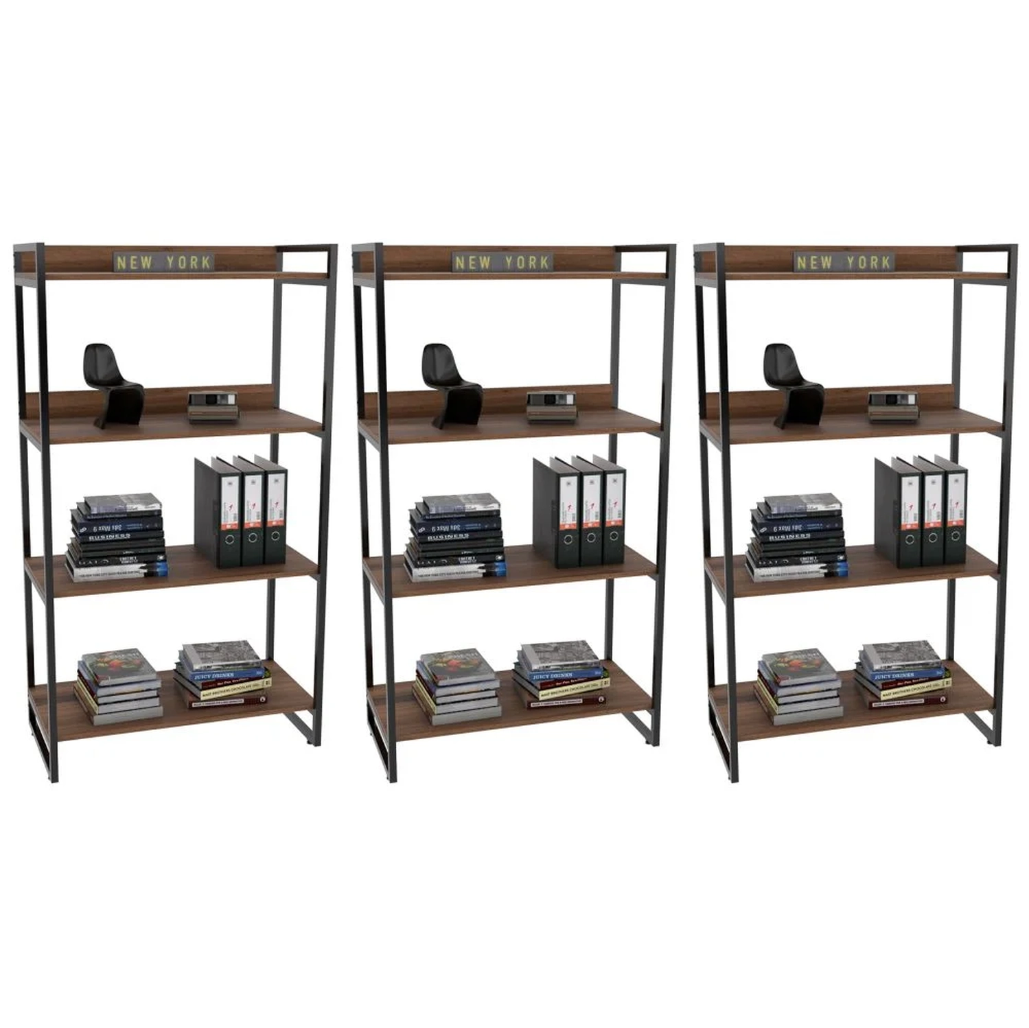 O Kit 3 Estantes Livreiro Prisma Estilo Industrial 80cm 4 Prateleiras Nogal - Mpozenato, é perfeito para compor sua decoração garantindo praticidade e estilo. Confeccionadas em MDP de 15 mm com acabamento em BP e partes metálicas em pintura epóxi que proporcionam maior durabilidade e resistência ao produto. Além disso, contam com design inovador com seu estilo industrial combinando os tubos de aço à madeira, trazendo um pouco do charme urbano ao seu ambiente. Ideais para expor objetos decorativos como livros. Adquira já o seu!