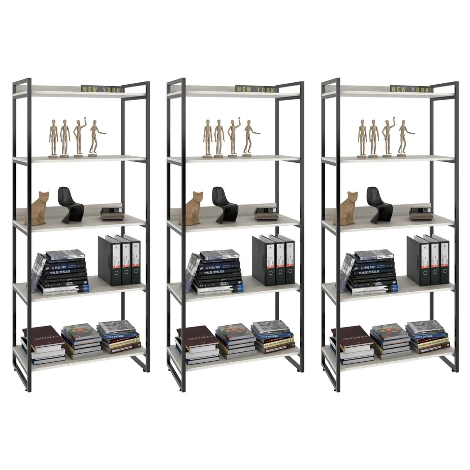 O Kit 3 Estantes Livreiro Prisma Estilo Industrial 80cm 5 Prateleiras Snow - Mpozenato, vão garantir praticidade e estilo na sua decoração, dando um charme á mais. Confeccionadas em MDP de 15 mm com acabamento em BP e partes metálicas em pintura epóxi que proporcionam maior durabilidade e resistência ao produto. Além disso, contam com design inovador com seu estilo industrial combinando os tubos de aço à madeira, trazendo um pouco do charme urbano ao seu ambiente. Ideais para expor objetos decorativos como livros. Adquira já o seu Kit!
