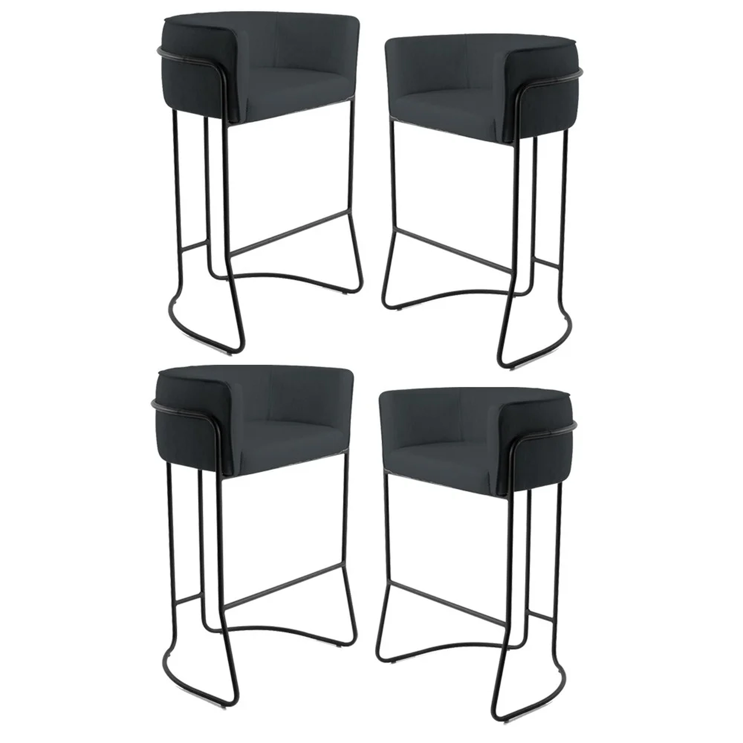 Kit 4 Banquetas Decorativas Base Aço Preto Betina D-465 Linho Chumbo - Domi 660042566