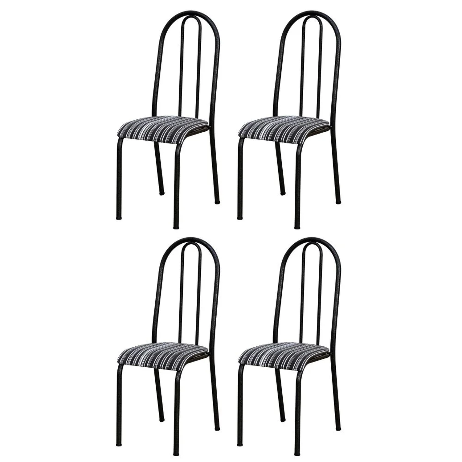 O Kit 4 Cadeiras 056 América Cromo Preto/Listrado - Artefamol, é uma excelente opção para complementar seu ambiente com estilo e qualidade, estrutura do tubo em aço carbono, acabamento em pintura epóxi, assento anatômico com revestimento de espuma e courvin. Deixe sua cozinha mais sofisticada com essas lindas cadeiras. Tá esperando o que? Leve já a sua!