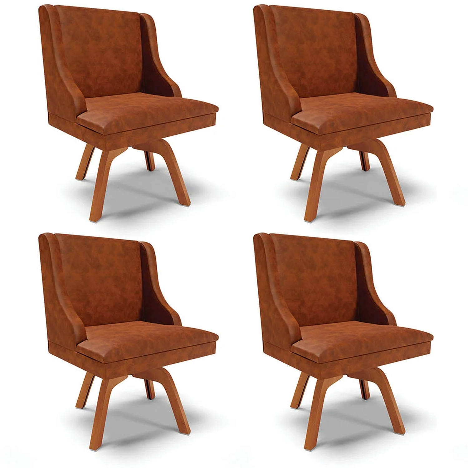 O Kit 4 Cadeiras Estofadas Base Giratória de Madeira Lia Sintético Premium Nozes, da Ibiza, é o que faltava para completar a sua casa, confira os detalhes!
