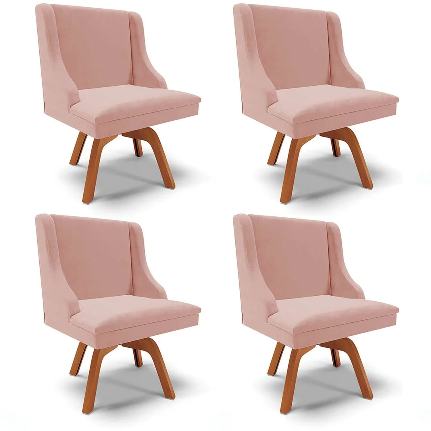 O Kit 4 Cadeiras Estofadas Base Giratória de Madeira Lia Veludo Rosê, da Ibiza, é o Kit que vai renovar a decoração da sua Sala de Jantar, vem conhecer!