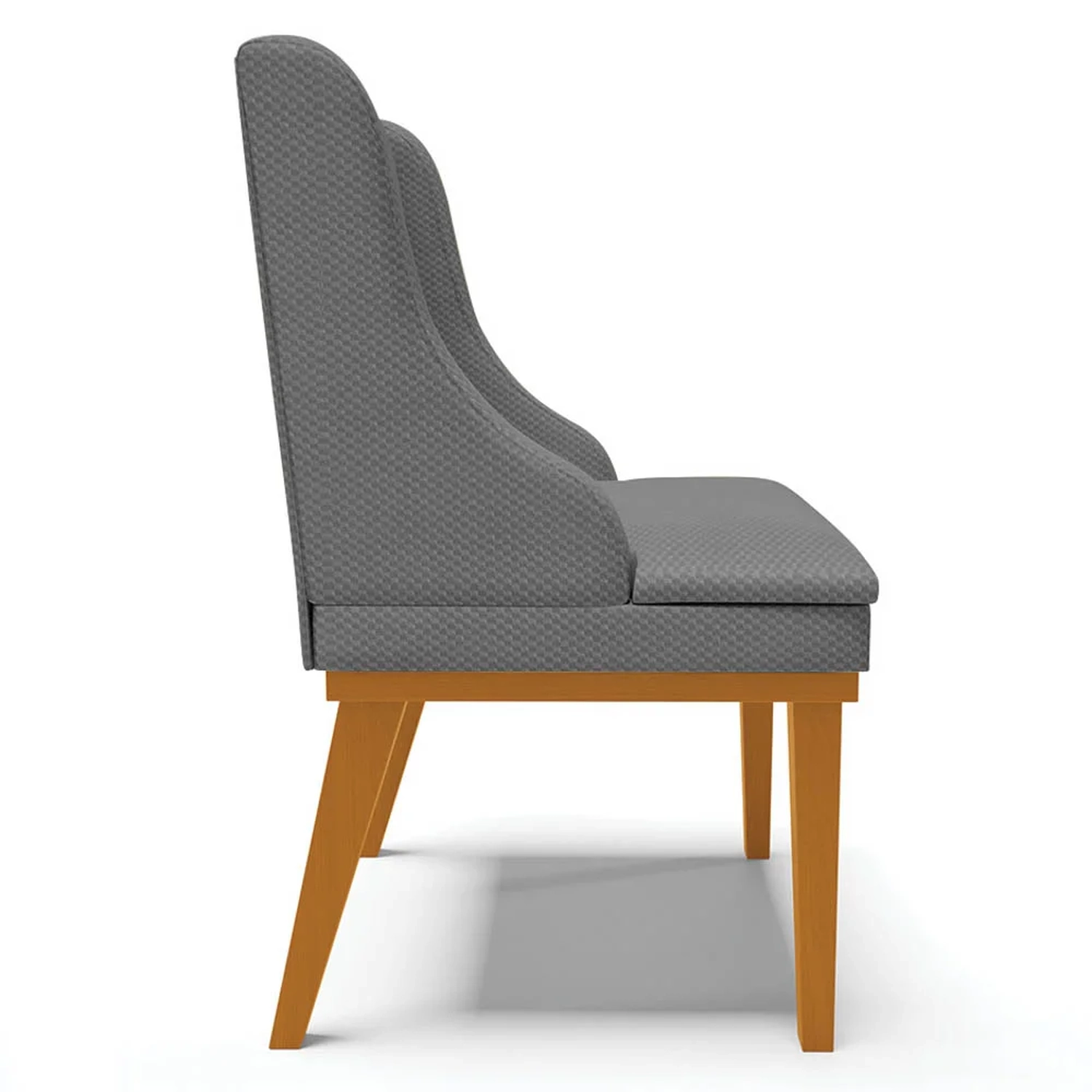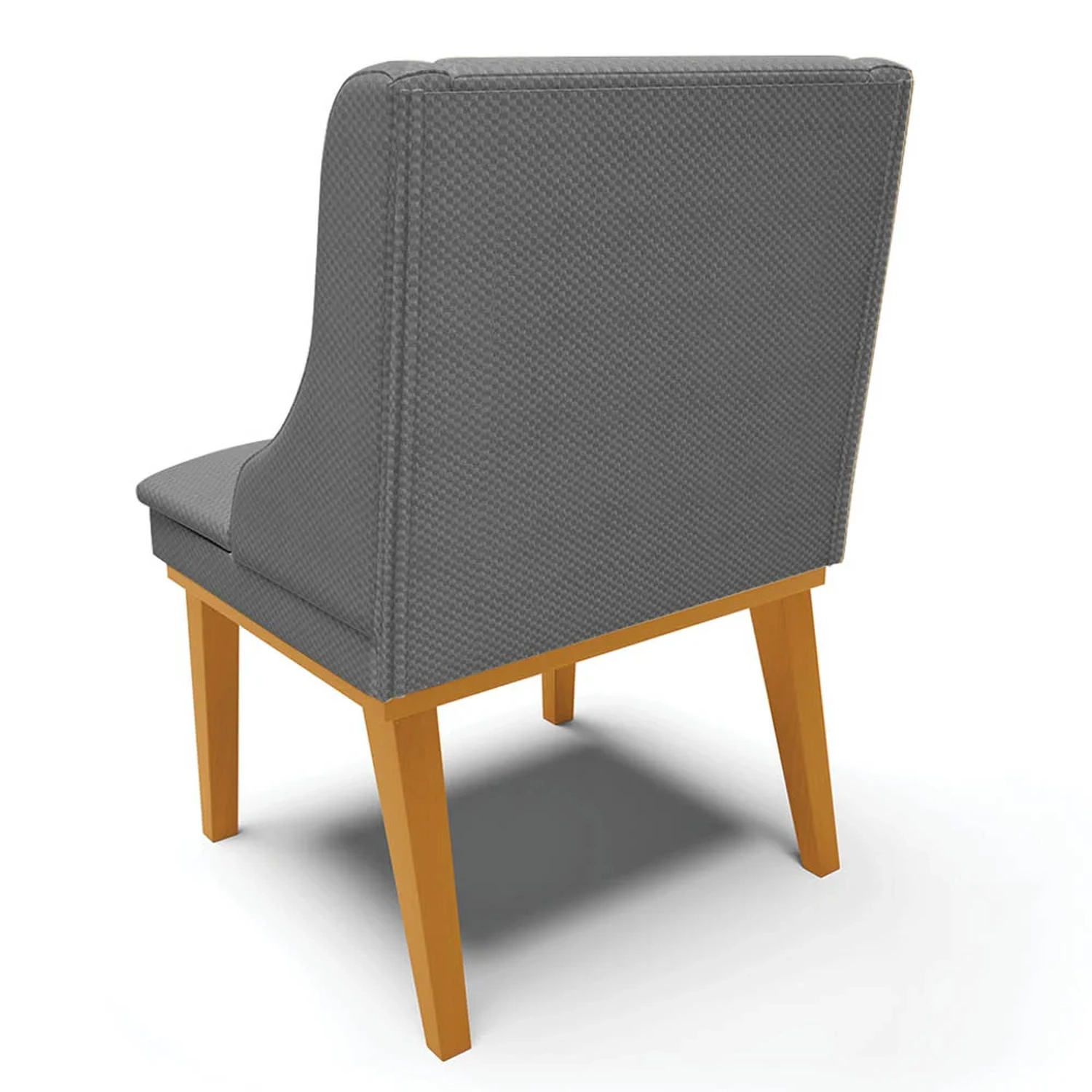 A Cadeira Lia é produzida em Madeira Eucalipto ecologicamente correta e a base fixa de madeira suporta até 120 kg, sem impacto. Seu estofamento é composto por espuma macia densidade D-23 e revestida em Veludo, tecido clássico, elegante, resistente, confortável e de toque macio.