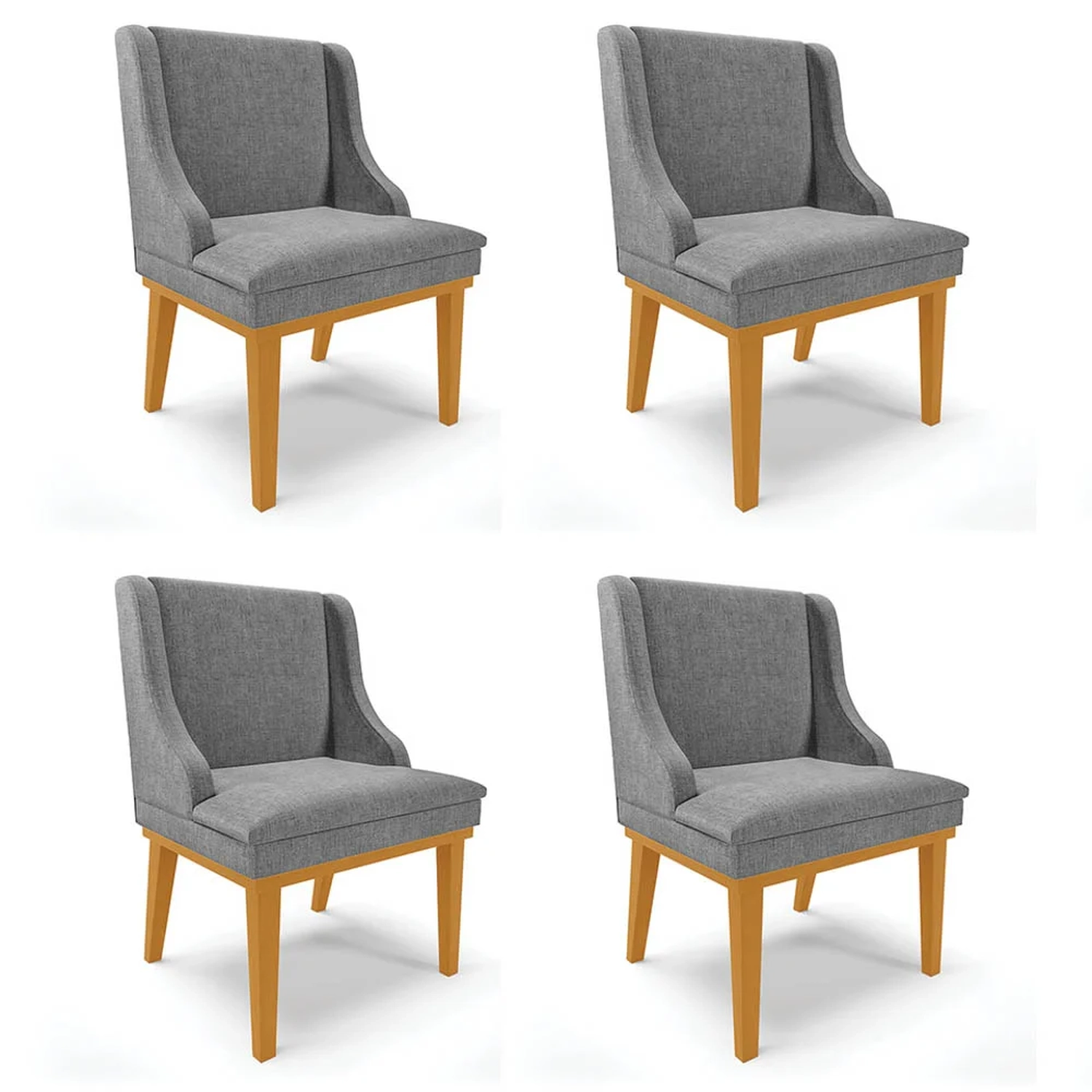 As cadeiras estofadas são essenciais para a sua casa, pois, além de agregar beleza na decoração do ambiente, são confortáveis, aconchegantes e resistentes. O Kit 4 Cadeiras Lia, foi projetado com um design exclusivo que facilita combiná-las com os outros móveis, deixando sua sala de jantar ainda mais bonita, as cadeiras são produzidas com materiais de alta qualidade, para que não se preocupe em desfrutar de bons momentos durante as refeições com sua família e amigos. Essa cadeira de jantar possui estrutura em Madeira Eucalipto de reflorestamento, ecologicamente correta e a base fixa de madeira suporta até 120 kg, sem impacto. A parte estofada é composta por espuma macia com densidade D-23 e o revestimento é em tecido Linho, que conta com propriedades térmicas, antialérgicas e toque agradável, por ser um tecido nobre transmite luxo, leveza e elegância.