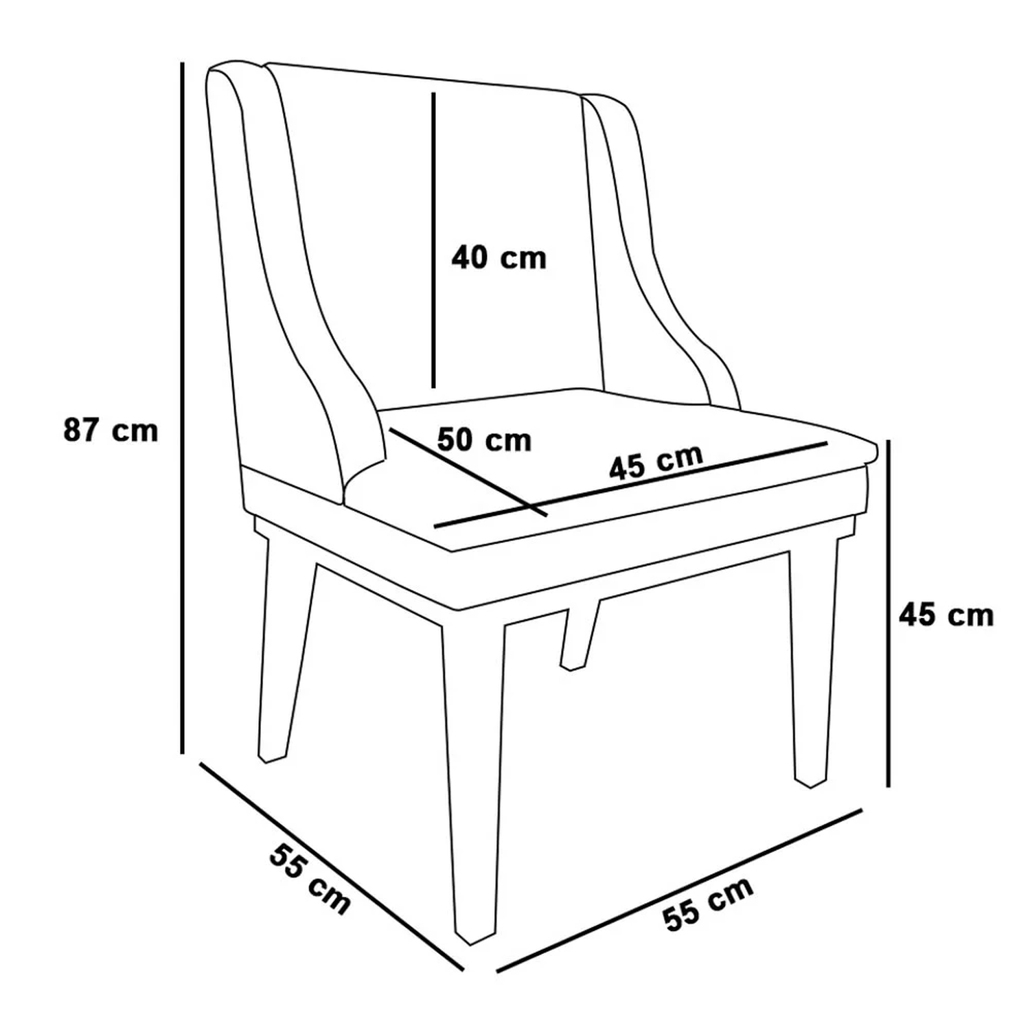 Estampar a nossa personalidade na decoração de casa nem sempre é uma tarefa fácil, são muitos móveis, cores, tecidos e objetos decorativos para combinar e deixar o ambiente em harmonia, por isso, o Kit 4 Cadeiras Lia é uma ótima aquisição para a Sala de Jantar! Além de linda, a Cadeira Estofada é fabricada com materiais de excelente qualidade, o que a torna resistente, durável e acima de tudo aconchegante, assim, você pode aproveitar suas refeições com sua família e amigos, confortavelmente. Seu design único, permite combiná-la facilmente com outros móveis e objetos de decoração. Sobre a parte técnica, é importante mencionar que ela é produzida em madeira eucalipto, ecologicamente correta, sua base é fixa e suporta até 120 kg, sem impacto. A parte estofada é produzida com espuma macia de densidade D-23 e revestida em Suede, tecido resistente, versátil, macio ao toque, confere conforto para o uso diário e de fácil limpeza.