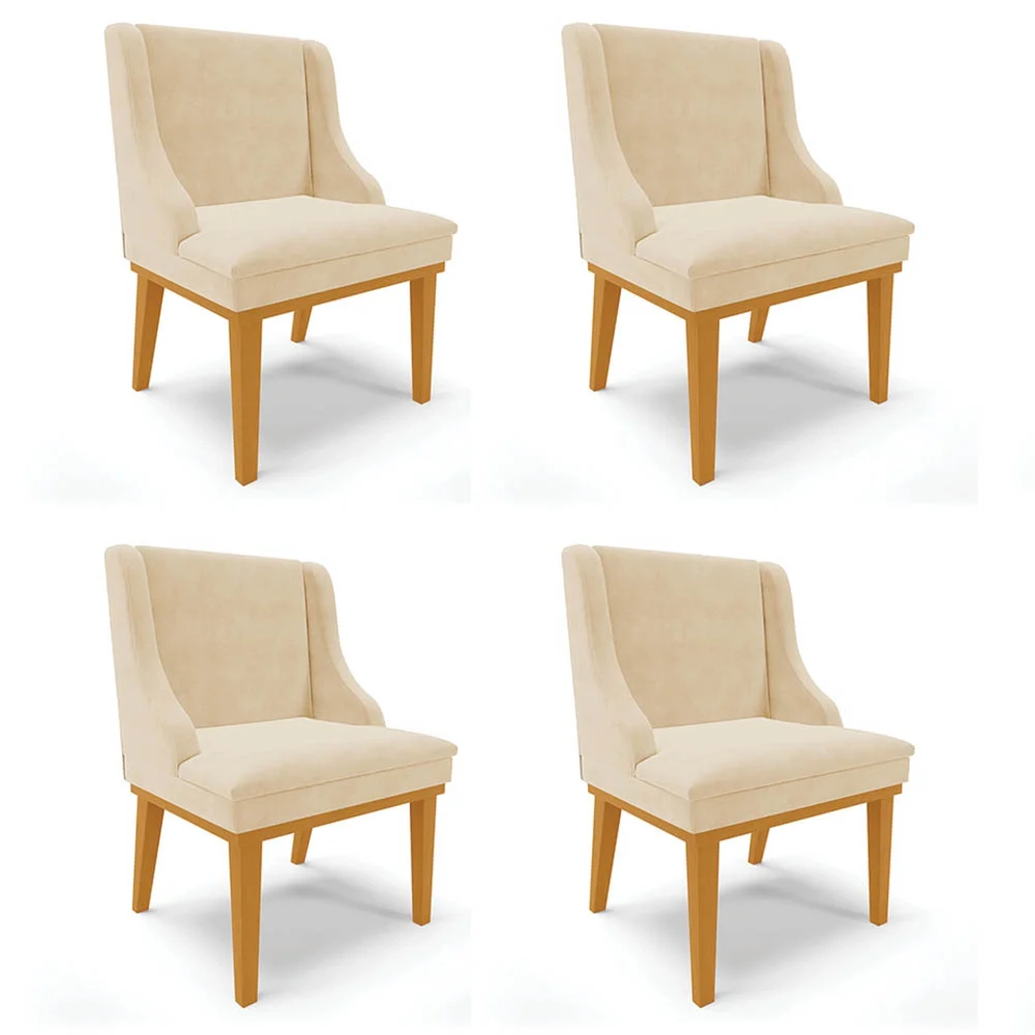 Tão importante quanto a mesa, as cadeiras são essenciais para compor um ambiente harmônico e funcional, então conheça o Kit 4 Cadeiras Estofadas para Sala de Jantar Base Fixa de Madeira Castanho Lia Suede Bege, que a Ibiza desenvolveu para você!