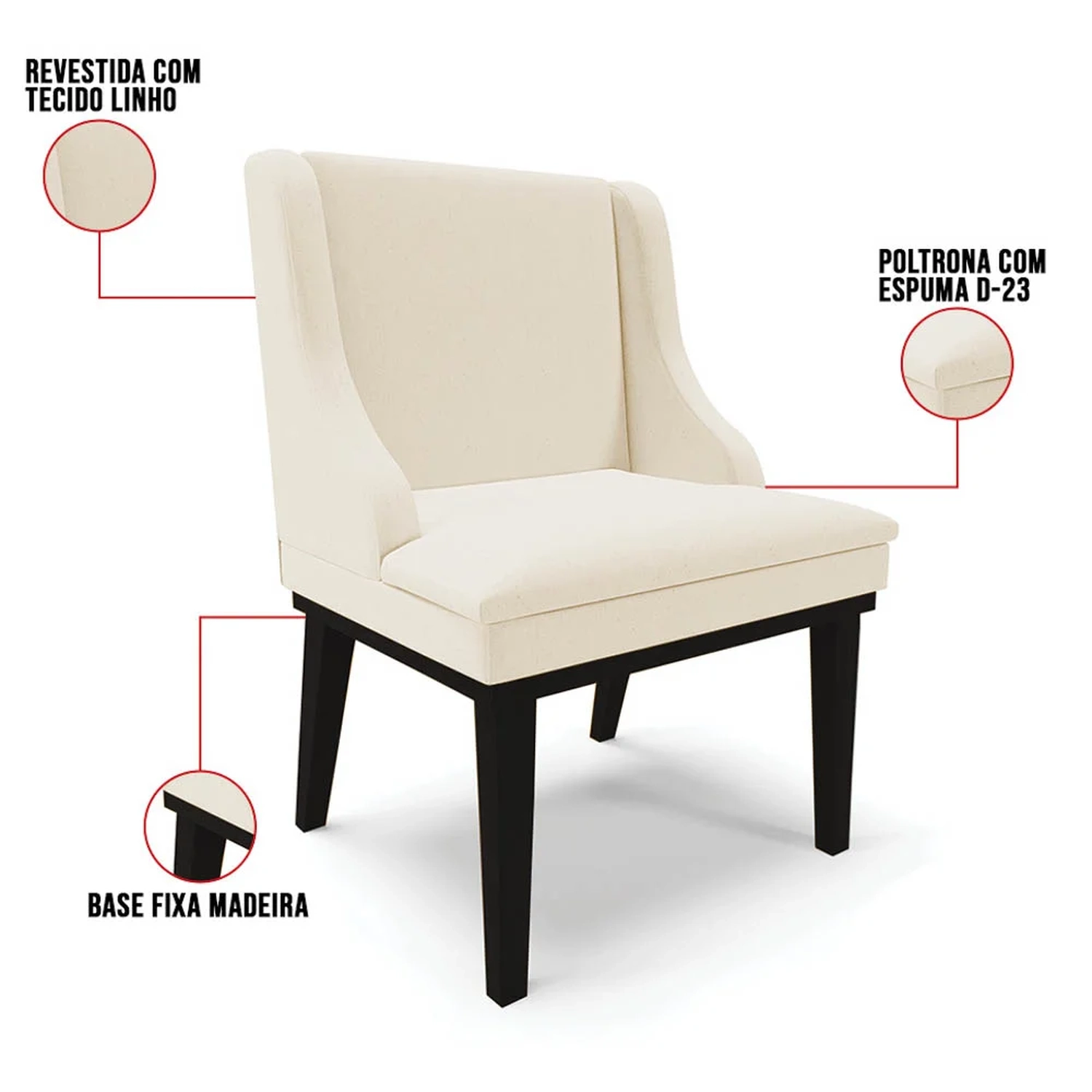 Revestimento/Tecido: Linho.