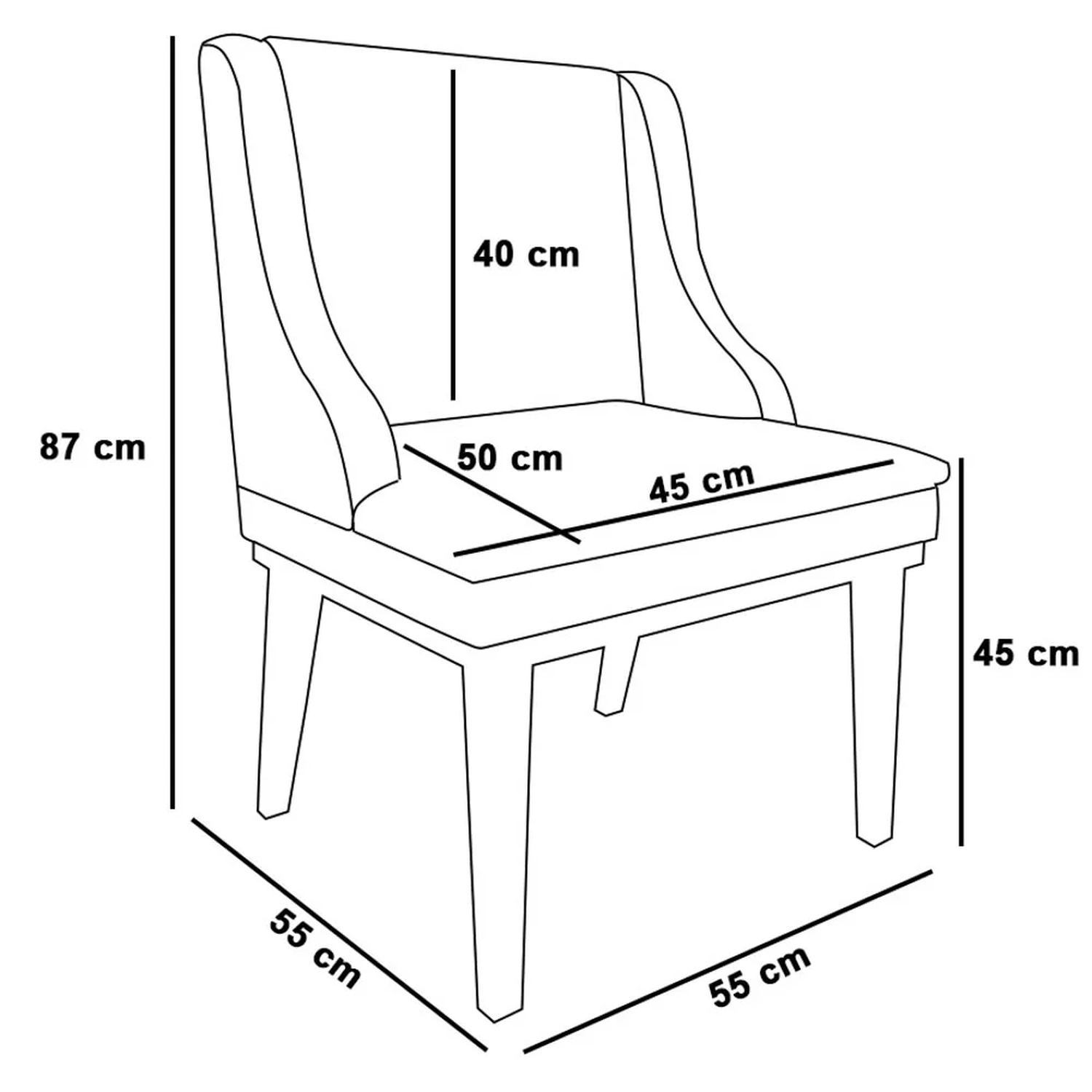 Altura do assento ao chão: 45 cm.