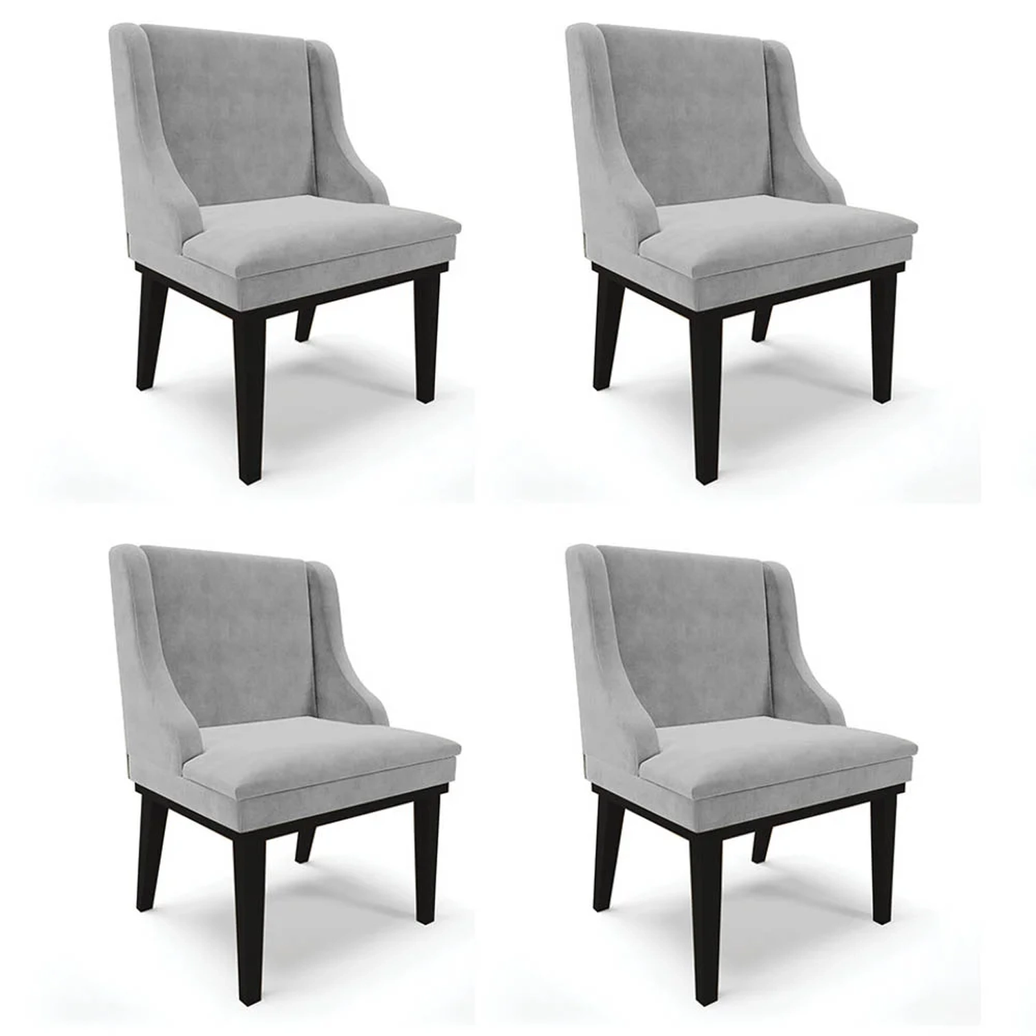 Pensando em renovar os móveis de casa? Vem conhecer o Kit 4 Cadeiras Estofadas para Sala de Jantar Base Fixa de Madeira Preto Lia Suede Cinza, da Ibiza!