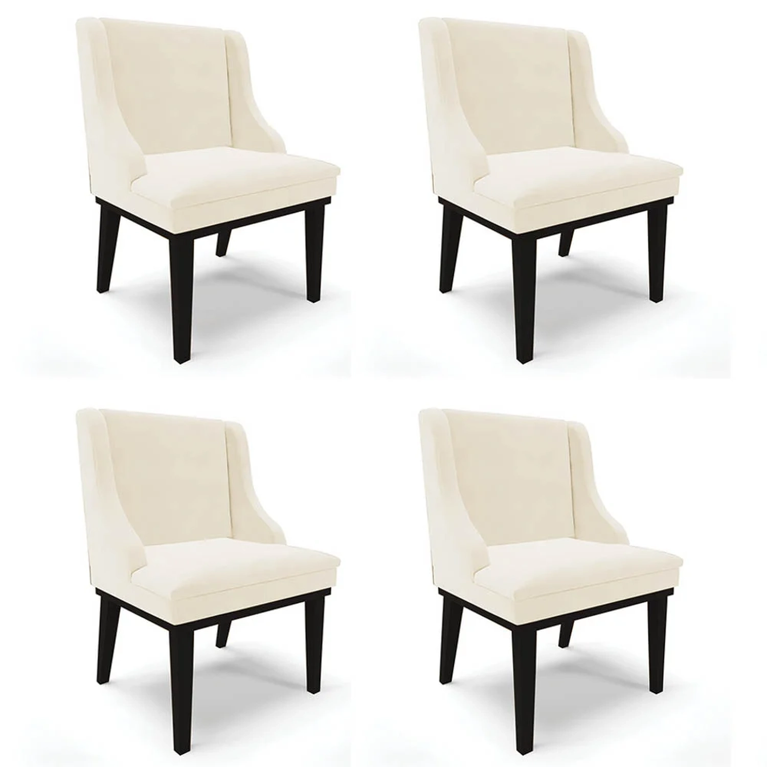 Para quem não dispensa conforto, qualidade e beleza, o Kit 4 Cadeiras Estofadas para Sala de Jantar Base Fixa de Madeira Preto Lia Veludo Bege, da Ibiza, é ideal, confira!