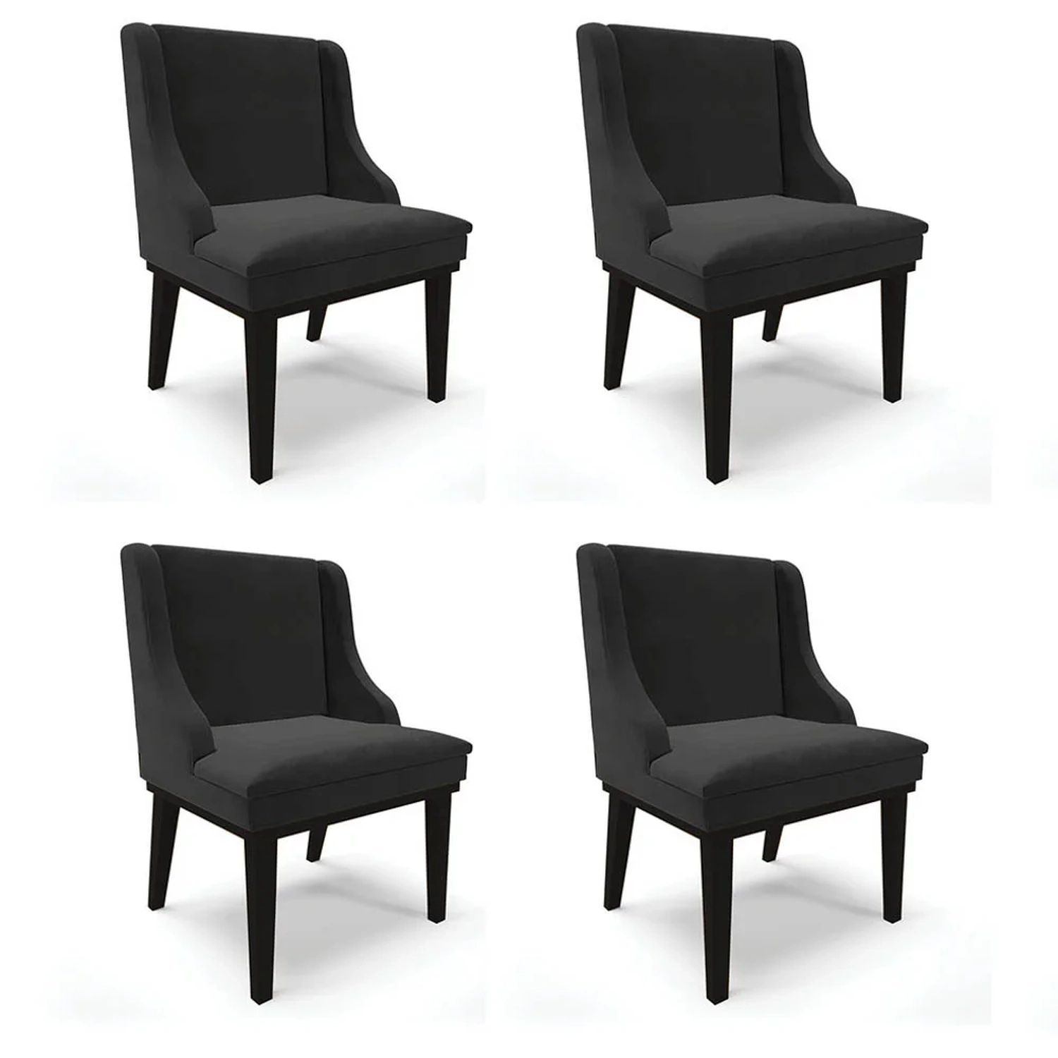 Para quem não dispensa conforto, qualidade e beleza, o Kit 4 Cadeiras Estofadas para Sala de Jantar Base Fixa de Madeira Preto Lia Veludo Preto, da Ibiza, é ideal, confira!