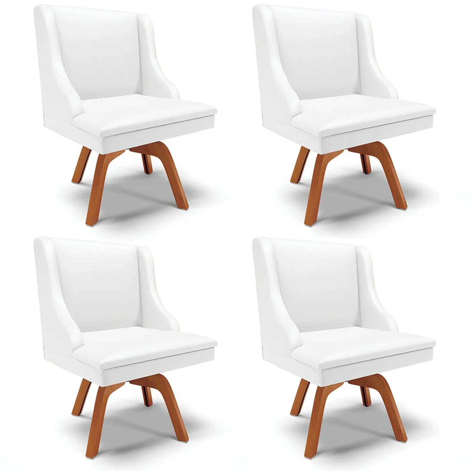 O Kit 4 Cadeiras Estofadas para Sala de Jantar Base Giratória de Madeira Lia Sintético Branco, da Ibiza, vai deixar sua casa muito mais especial, confira!