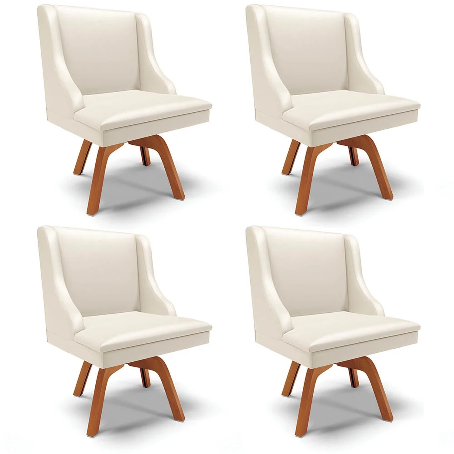 O Kit 4 Cadeiras Estofadas para Sala de Jantar Base Giratória de Madeira Lia Sintético Bege, da Ibiza, vai deixar sua casa muito mais especial, confira!
