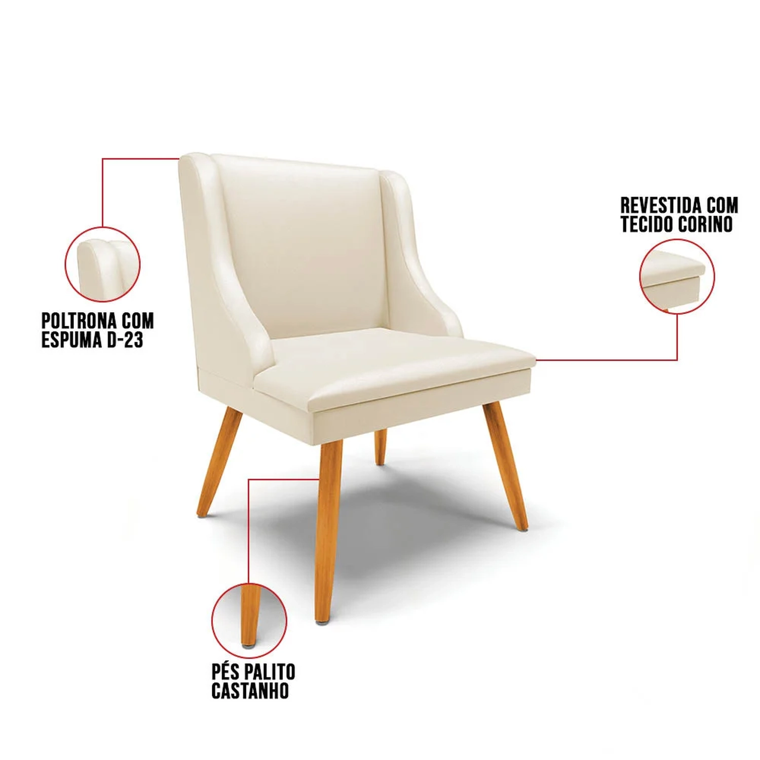 Além de combinar com vários estilos de decoração, a Cadeira Estofada com Pés Palito vem ganhando o coração das casas brasileiras, deixando-as mais charmosas com um leve toque retrô! Pensando nisso, a Cadeira Estofada Lia foi projetada para dar um toque elegante e clean na decoração desde a Sala de Jantar, Sala de Estar, Varanda até Área Gourmet, tornando o ambiente especial para reunir a família e os amigos garantindo momentos memoráveis! O móvel é produzido com madeira de eucalipto de reflorestamento, ecologicamente correto, conferindo qualidade, segurança e resistência! A parte estofada é composta por espuma macia densidade D-23 e tecido Sintético, macio, durável e de fácil limpeza.