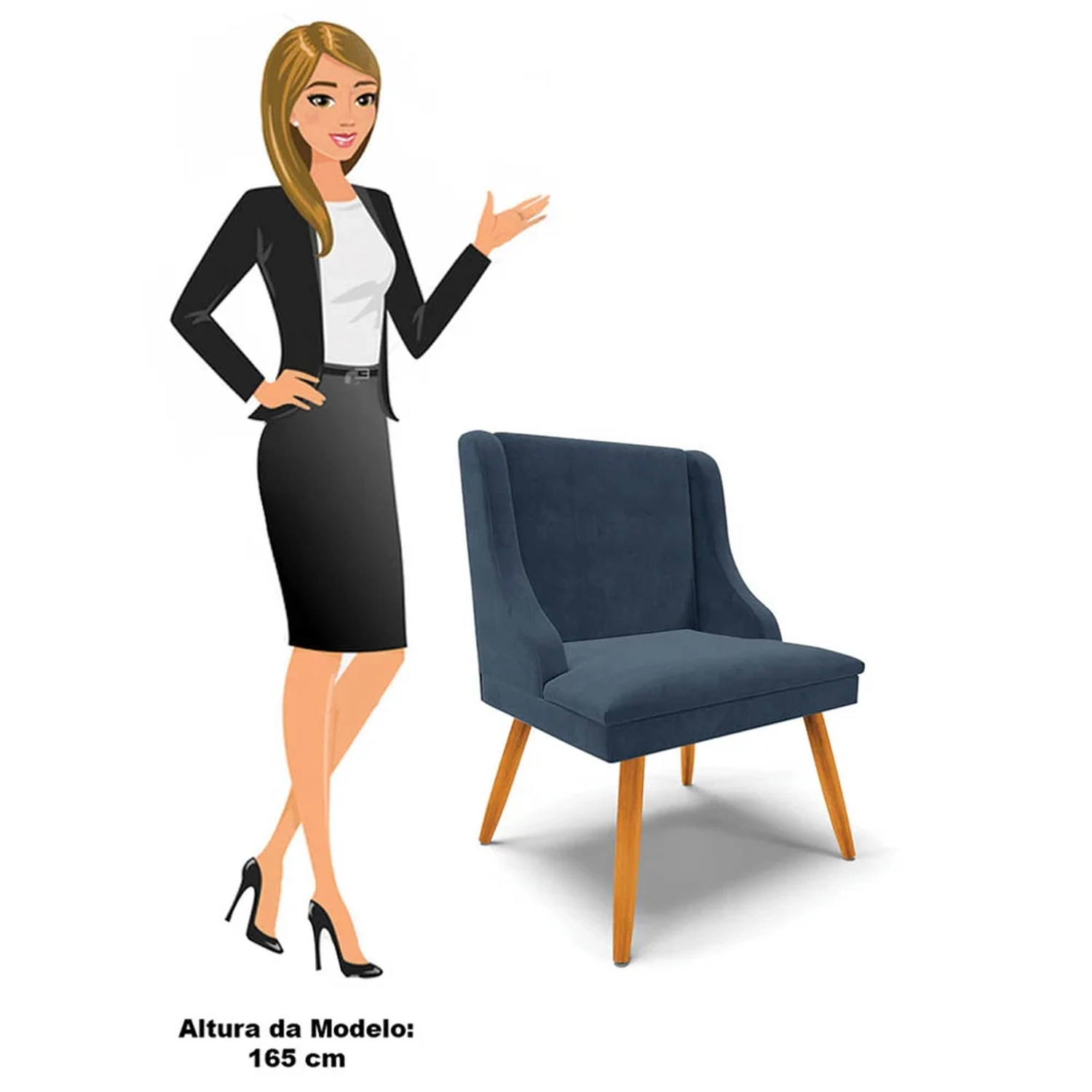 Com design atemporal e versátil o Kit 4 Cadeiras Estofadas para Sala de Jantar Pés Palito Lia Suede Azul Marinho, da Ibiza é perfeito para qualquer ambiente, agregando leveza e charme, confira!