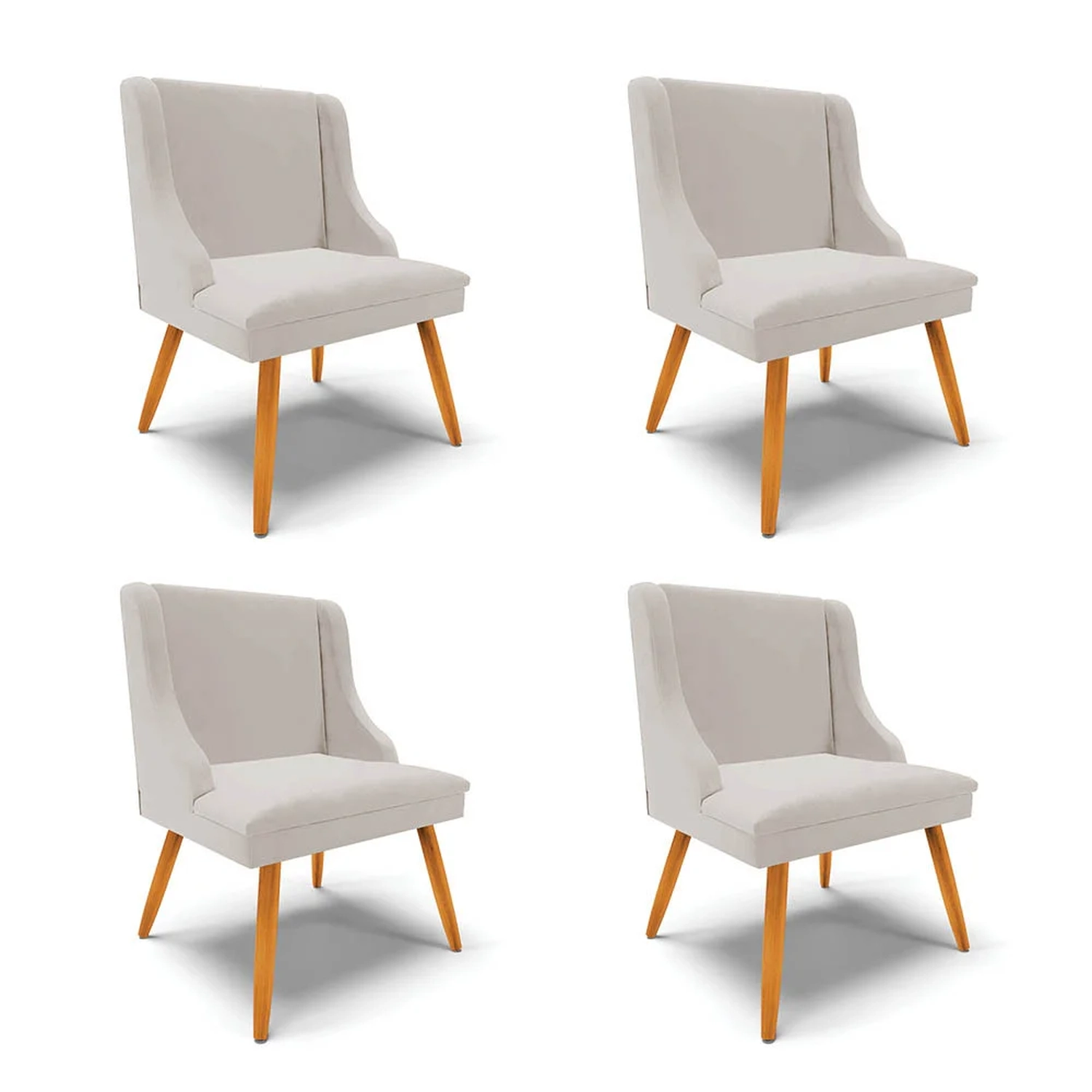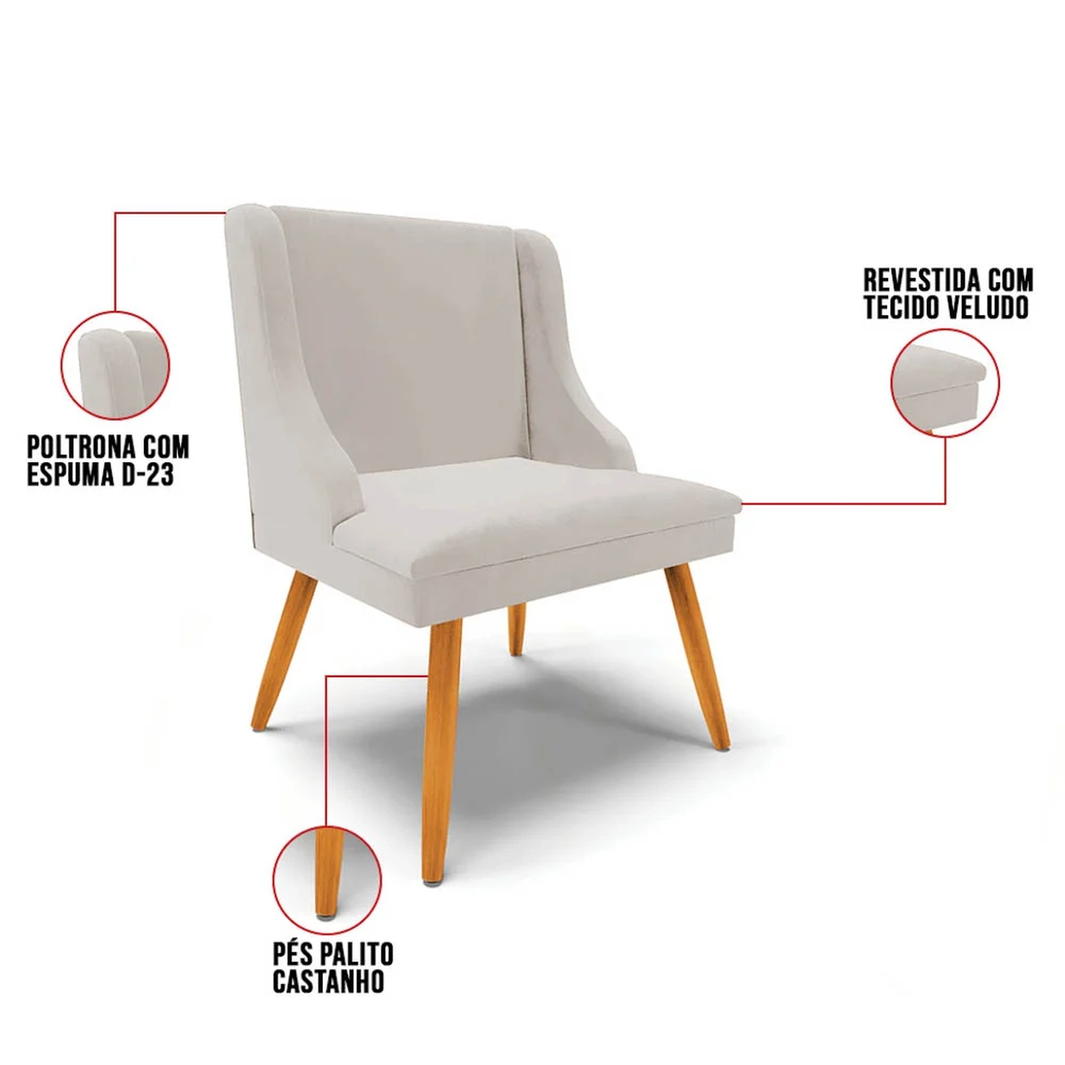 Para quem não abre mão de conforto, versatilidade e qualidade, precisa conhecer o Kit 4 Cadeiras Estofadas para Sala de Jantar Pés Palito Lia Veludo Cinza, da Ibiza! Confira os detalhes abaixo!