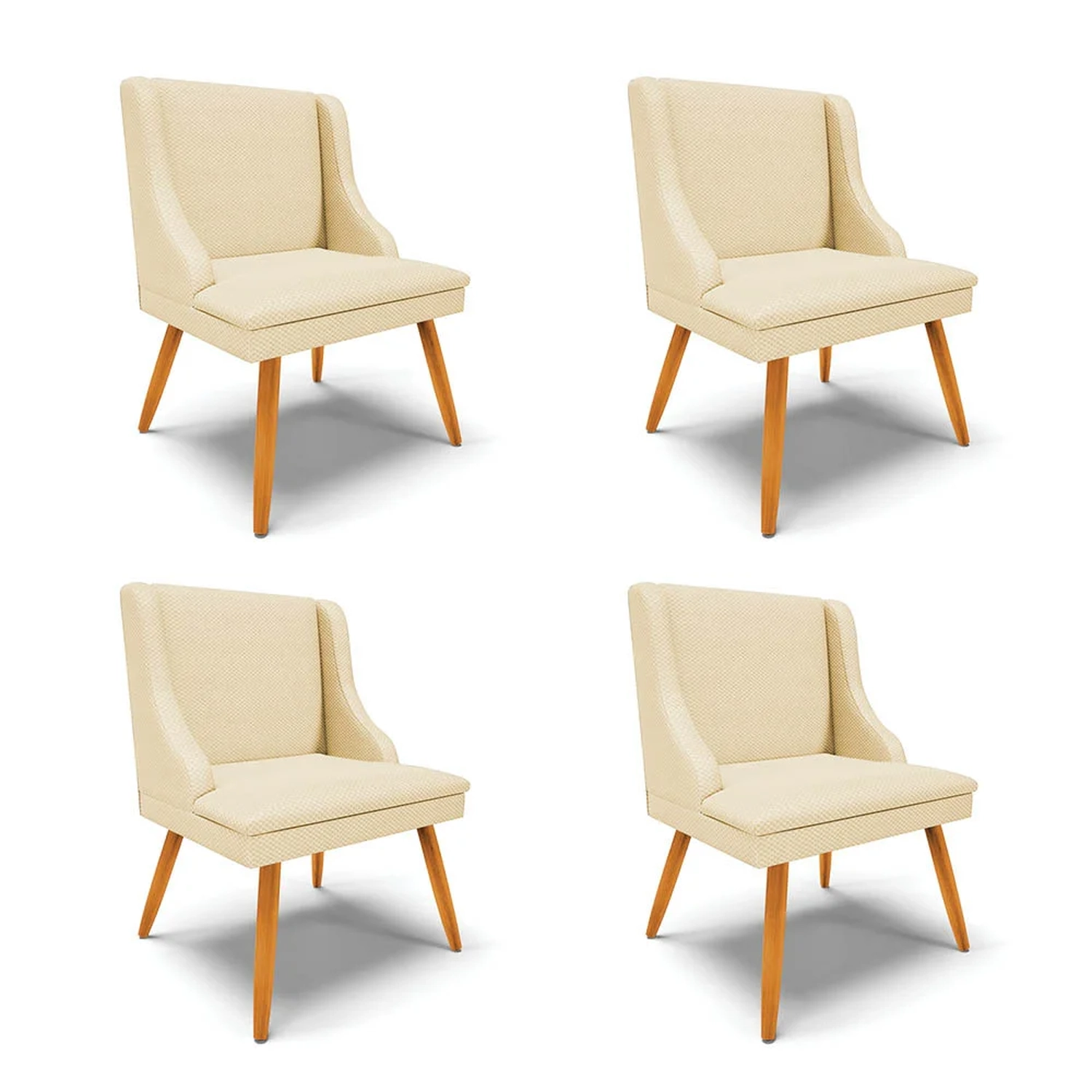 Para quem não abre mão de conforto, versatilidade e qualidade, precisa conhecer o Kit 4 Cadeiras Estofadas para Sala de Jantar Pés Palito Lia Veludo Off White Luxo, da Ibiza! Confira os detalhes abaixo!