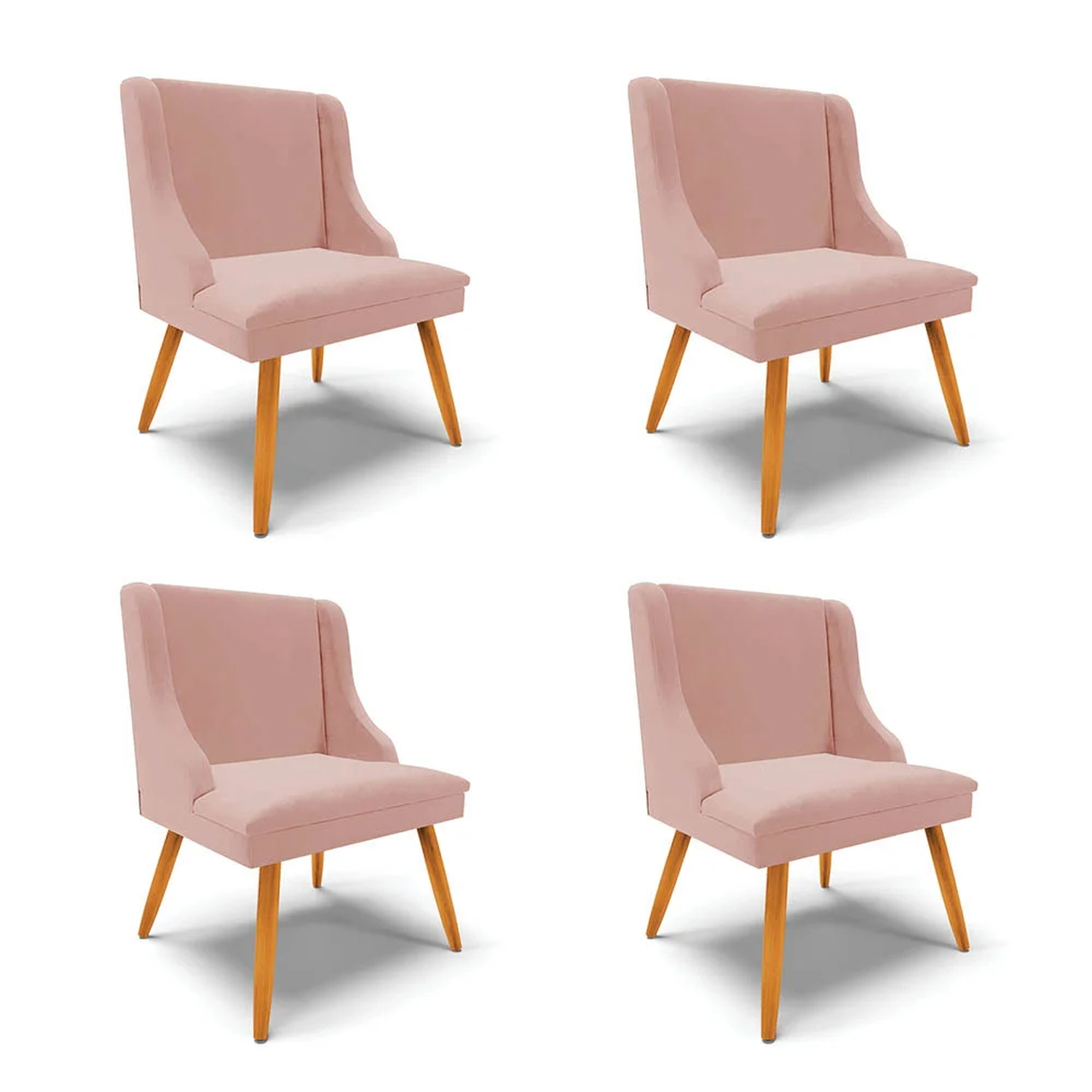 Para quem não abre mão de conforto, versatilidade e qualidade, precisa conhecer o Kit 4 Cadeiras Estofadas para Sala de Jantar Pés Palito Lia Veludo Rosê, da Ibiza! Confira os detalhes abaixo!