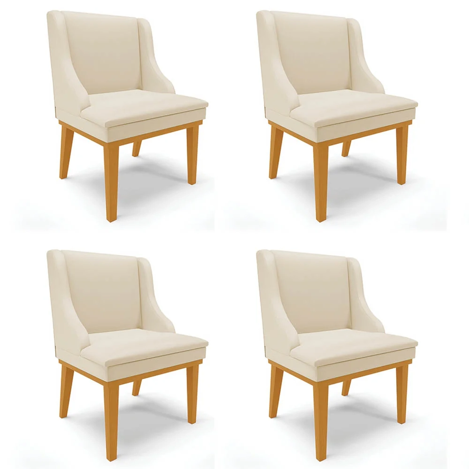 O Kit 4 Cadeiras Estofadas Sala de Jantar Base Fixa de Madeira Castanho Lia Sintético Bege, da Ibiza, é o que está procurando para deixar a sua Sala de Jantar ainda mais bonita, vem conhecer os detalhes!