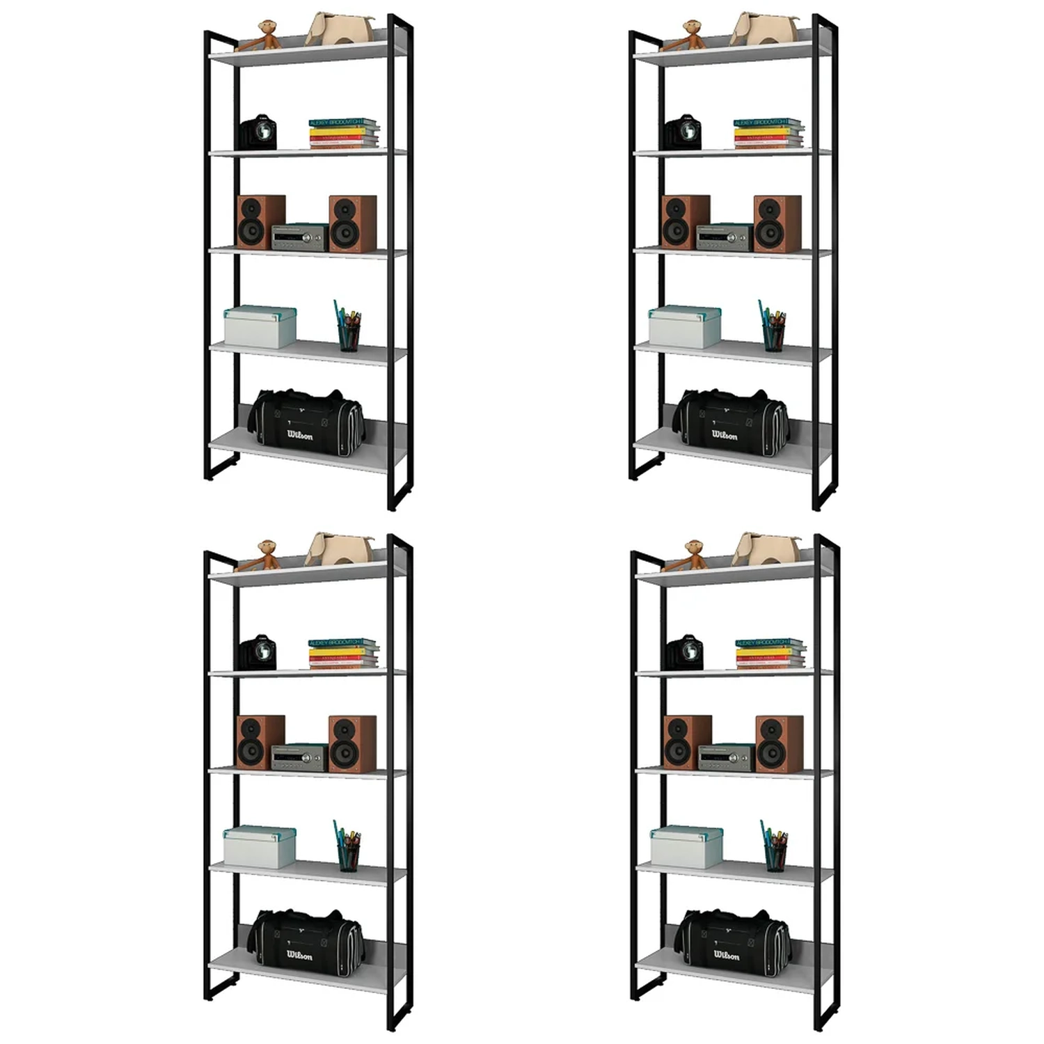 Com o Kit de 4 Estantes Studio Industrial, da Mpozenato, você vai ganhar em espaço, beleza e organização, pois essas peças possuem medidas compactas, além de uma estrutura metálica slim, confeccionada em Tubo de Aço 20x20 com pintura epóxi na cor Preto. Já as prateleiras na cor Branco são fabricadas em MDP 15mm com acabamento em BP, proporcionando maior durabilidade e resistência aos produtos.