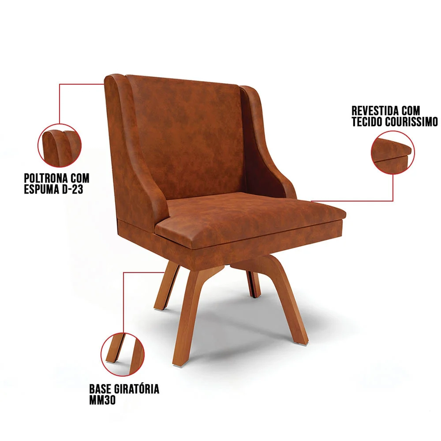 Para criar um ambiente lindo, aconchegante e sofisticado o Kit 6 Cadeiras Estofadas Base Giratória de Madeira Lia Sintético Premium Nozes, da Ibiza, é perfeito! Confira!