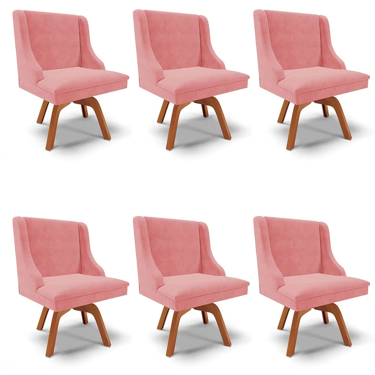 Quer dar um UP na decoração da Sala de Jantar? Confira o Kit 6 Cadeiras Estofadas Giratória para Sala de Jantar Lia Suede Rosê, da Ibiza e surpreenda-se!