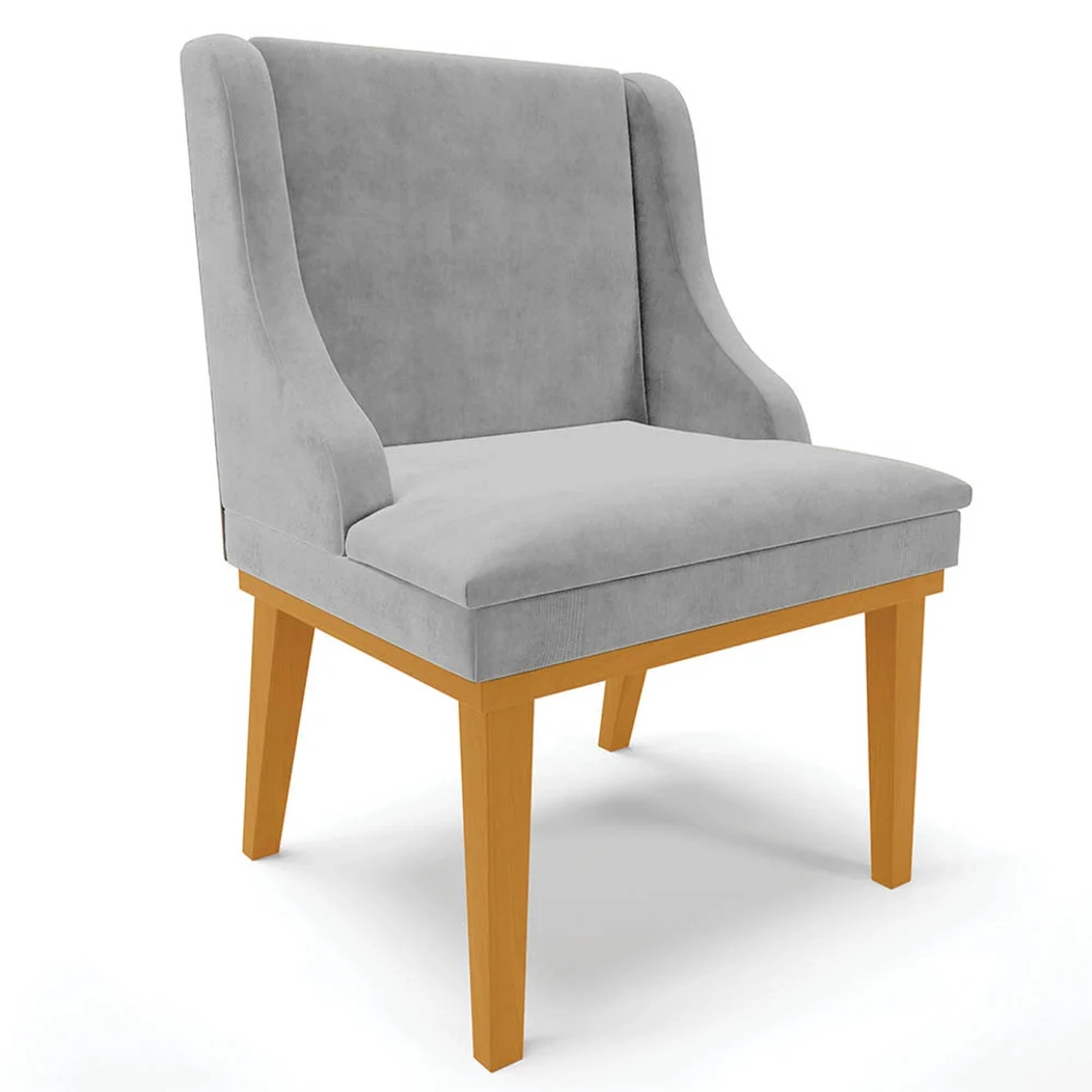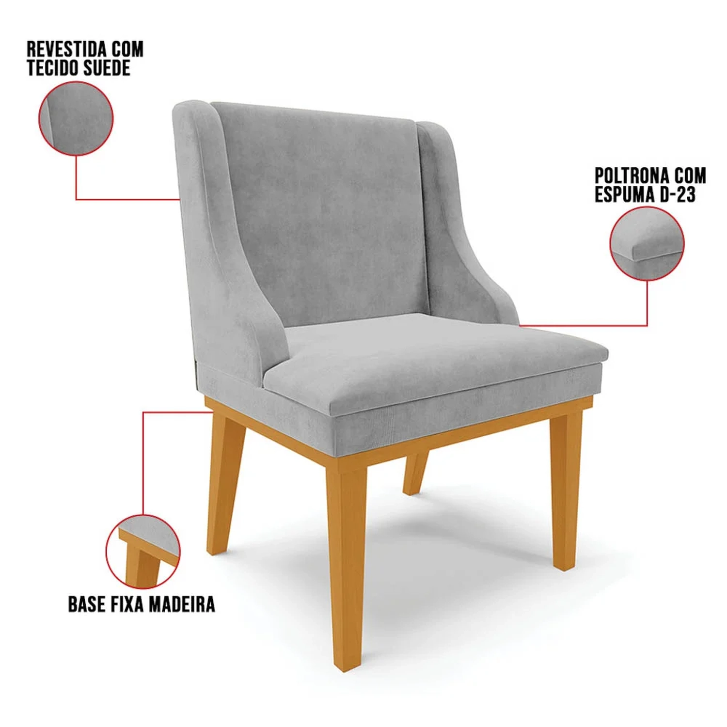 Tão importante quanto a Mesa, a Cadeira Estofada é o complemento ideal para seu Conjunto de jantar, pois, ela permite que você faça suas refeições com conforto e segurança. Na hora de escolhermos a cadeira, algumas dúvidas surgem na hora de combiná-la com outros móveis, por isso, o design clean da Cadeira Lia permite que você harmonize facilmente com a decoração do ambiente. Vamos conhecer os detalhes? Ela é produzida com Madeira Eucalipto, a base fica em madeira suporta até 120kg, sem impacto, o conforto vem da espuma macia de densidade D-23 e do revestimento em Suede, tecido resistente, macio ao toque e de fácil limpeza.