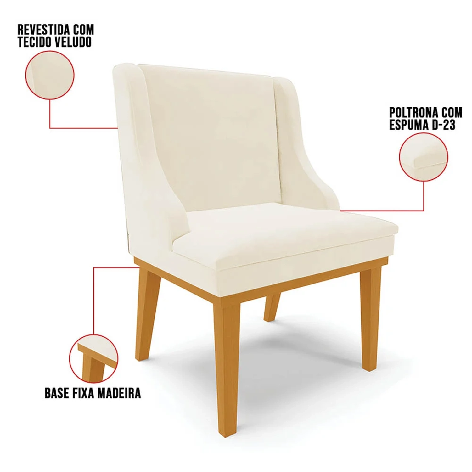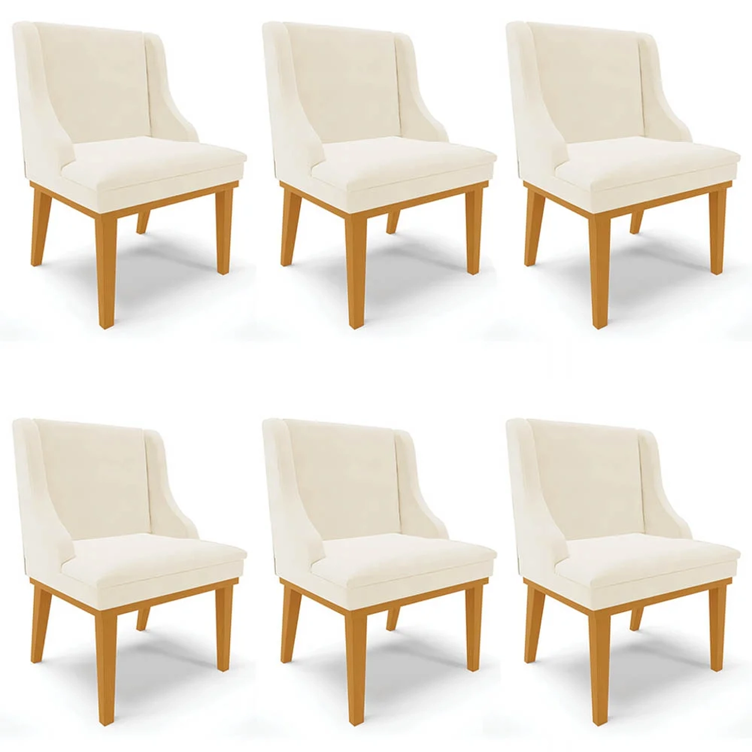 Reunir pessoas queridas e compartilhar refeições é um dos melhores momentos que temos no nosso dia, melhor ainda se for ao redor de uma bela mesa e de cadeiras confortáveis, pensando nisso a Ibiza apresenta o Kit 6 Cadeiras Estofadas para Sala de Jantar Base Fixa de Madeira Castanho Lia Veludo Bege.