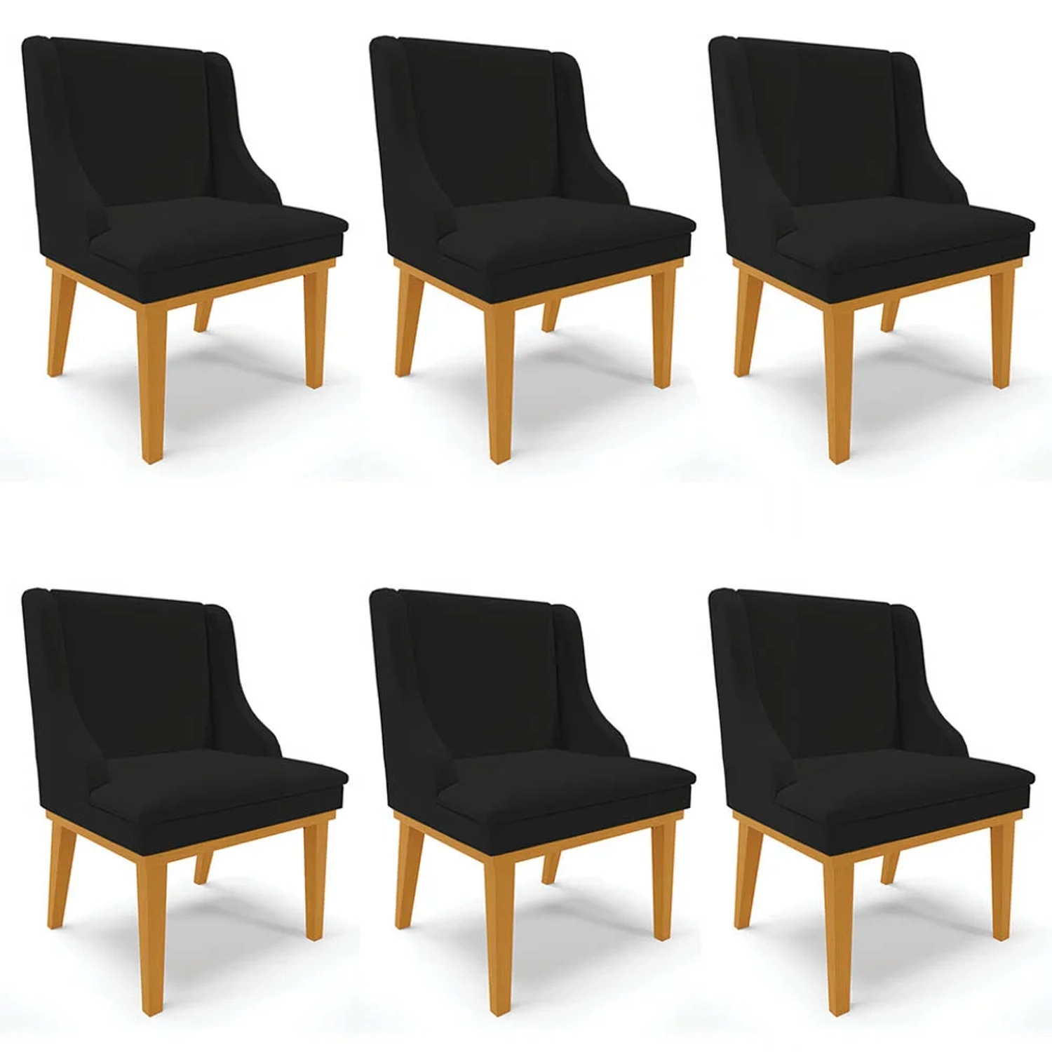 Escolher a cadeira ideal para a sala de jantar não é uma tarefa fácil, ela precisa harmonizar com o ambiente e ser confortável, pensando nisso a Ibiza desenvolveu o Kit 6 Cadeiras Estofadas para Sala de Jantar Base Fixa de Madeira Castanho Lia Linho Preto, confira!