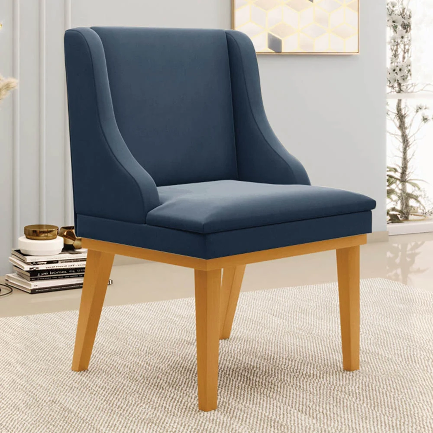 Quando se trata da Sala de Jantar, logo, pensamos na harmonia e no conforto do ambiente, por isso, o Kit 6 Cadeiras Estofadas para Sala de Jantar Base Fixa de Madeira Castanho Lia Suede Azul Marinho, da Ibiza, é perfeito para a sua casa!
