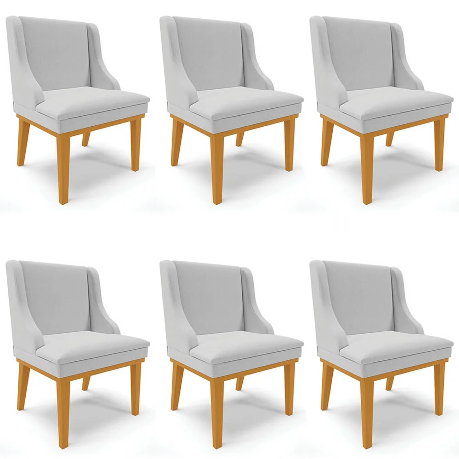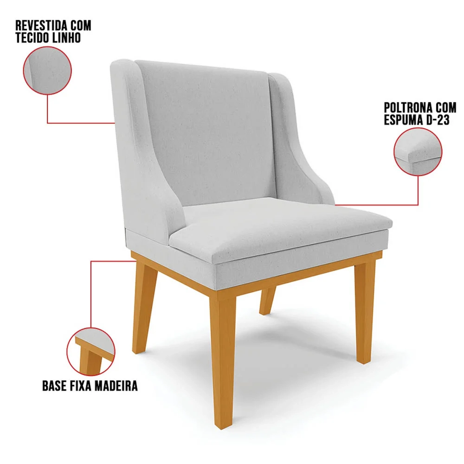 Mais que do que um simples móvel, a cadeira estofada é um artigo decorativo tão importante quanto a mesa de jantar, pois, ela agrega beleza na decoração e chama a atenção de quem vê, por isso, apresentamos o Kit 6 Cadeiras Lia que foi projetado com um design exclusivo que facilita combiná-las com os outros móveis, deixando sua sala de jantar ainda mais bonita. As cadeiras são produzidas com materiais de alta qualidade, para que não se preocupe em desfrutar de bons momentos durante as refeições com sua família e amigos. Essa cadeira de jantar possui estrutura em Madeira Eucalipto de reflorestamento, ecologicamente correta e a base fixa de madeira suporta até 120 kg, sem impacto. A parte estofada é composta por espuma macia com densidade D-23 e o revestimento é em Linho, que para alguns é a representatividade da nobreza! Esse tecido é versátil, durável, macio, conta com propriedades térmicas, antialérgicas e é de fácil limpeza.